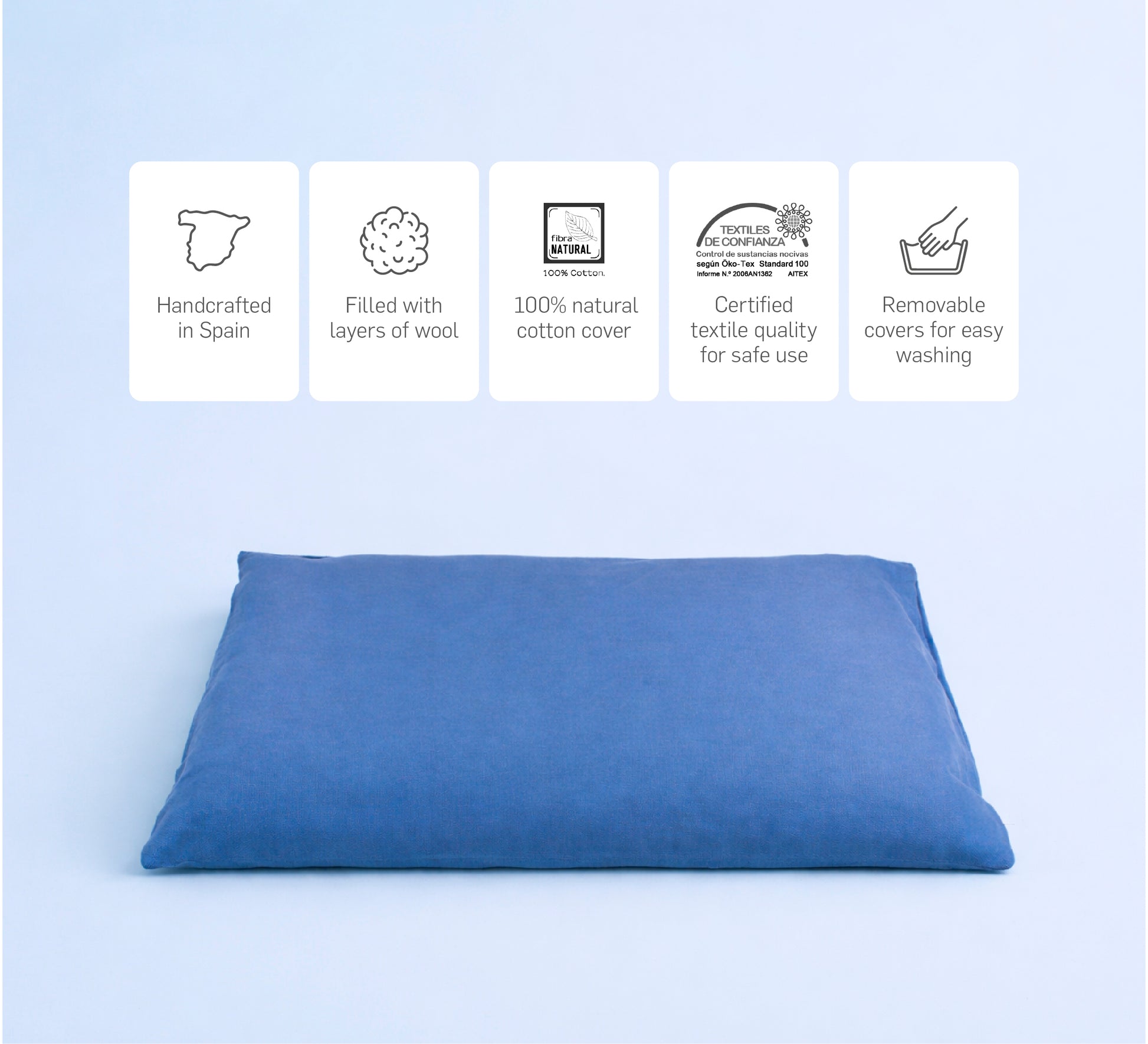 - Beschreibung: 80 x 69,5 x 10 cm, Außenbezug aus 100% Baumwoll-Japanstoff, Innenbezug aus 100% Baumwollköper, Füllung aus 100% Wolle. Ungefähres Gewicht: 2,40 kg.