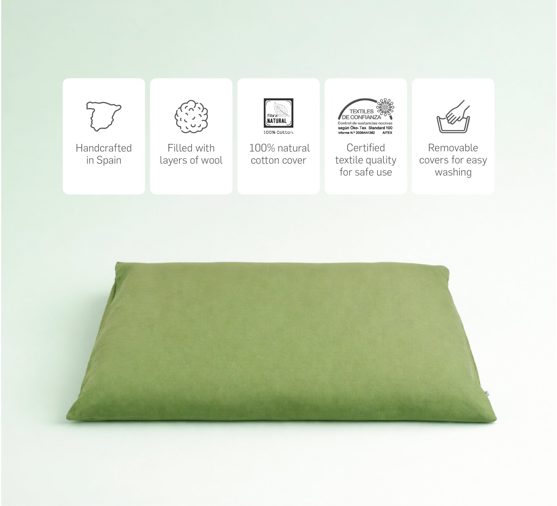 Unsere Zafus werden bewusst in Spanien hergestellt. Aus 100% natürlichen Materialien, werden sie handwerklich gefertigt mit Baumwollstoff, dreifacher Naht und Miraguano-Füllung. Miraguano – die ursprüngliche Füllung der Zafus in Japan – gibt die richtige Festigkeit, um längere Zeit bequem zu meditieren. Die natürliche Mikrofaser, aus der sie besteht, ist hohl wie ein Rohr und mit Fett bedeckt; das macht sie leichter als Baumwolle, fast vollständig wasserabweisend und für Parasiten unwirtlich.
