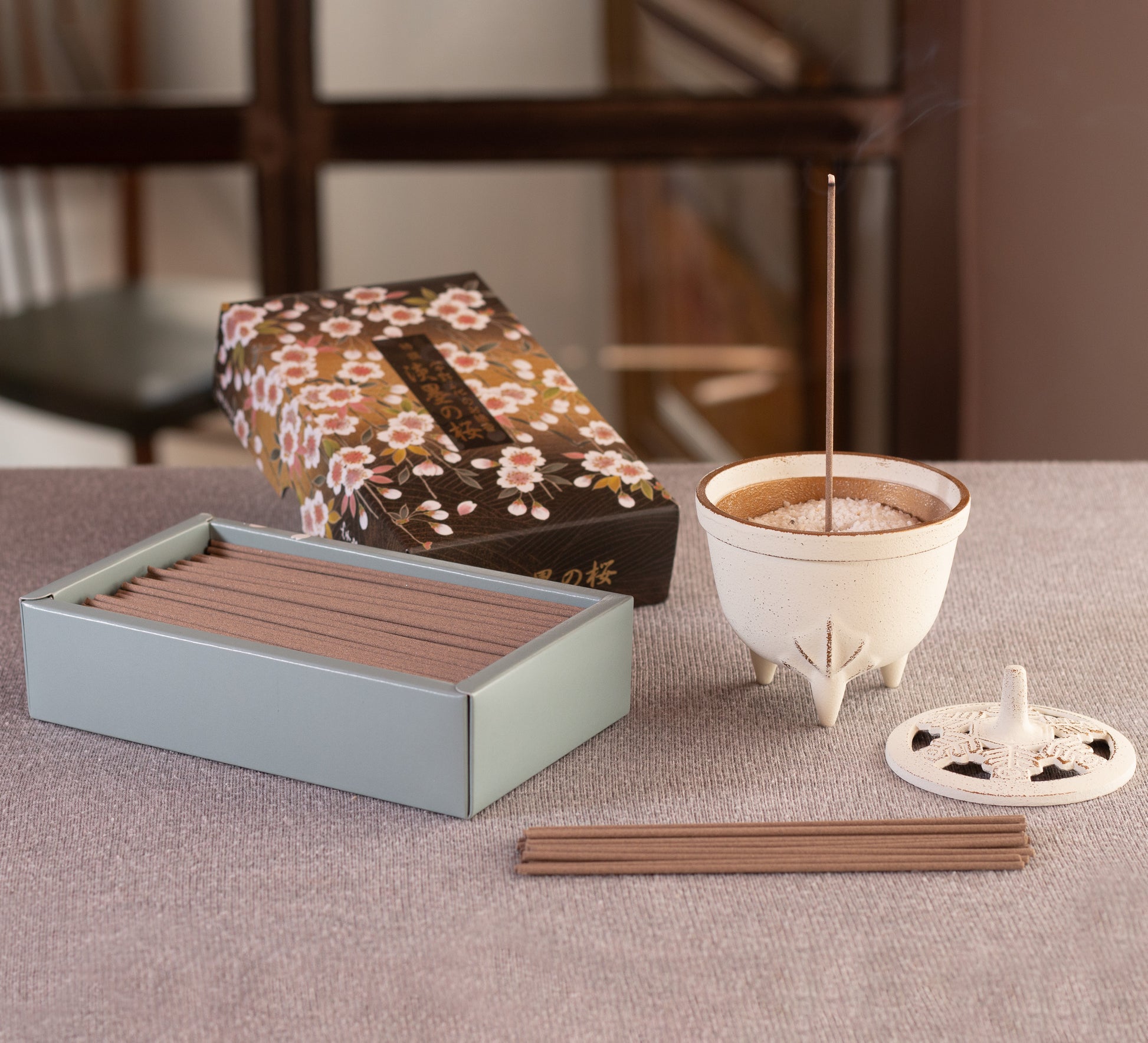 Tokusen Sakura Usuzumi hat einen sinnlichen Duft auf der Basis von Kirschblüte, Sandelholz und japanischem Zypressenöl, der ein Gefühl von Ruhe und Gelassenheit erzeugt. Wenn Sie die Schönheit von Usuzumi no Sakura betrachten, ist es, als würden Sie ein Rauschen der Ewigkeit spüren. Weihrauch mit weniger Rauch.