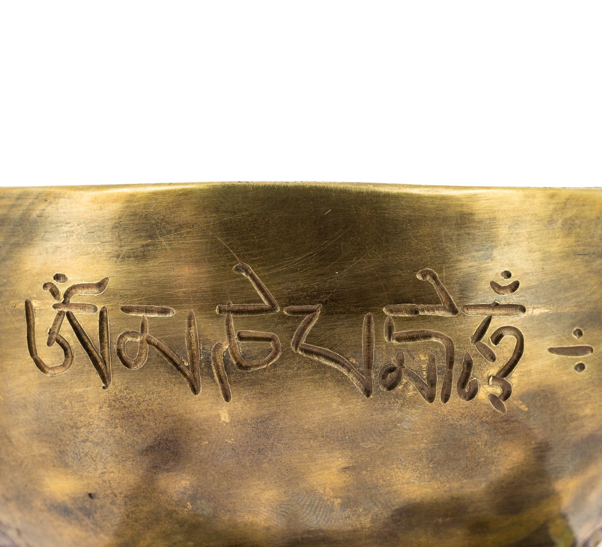 Die aus 7 Metallen gefertigte Vollmond-Klangschale ist eine einzigartige Art von tibetischer Klangschale, der besondere energetische Qualitäten zugeschrieben werden. Die verschiedenen Metalle und ihre planetarischen Zuordnungen sind Gold (Sonne), Silber (Mond), Kupfer (Venus), Eisen (Mars), Zinn (Jupiter), Merkur (Merkur) und Blei (Saturn). Das Mantra des Mitgefühls Om Mani Padme Hum und das Symbol für Glück und Langlebigkeit sind auf der Außenseite dieser Schale eingraviert, die bei Vollmondzeremonien und anderen meditativen Praktiken verwendet wird.