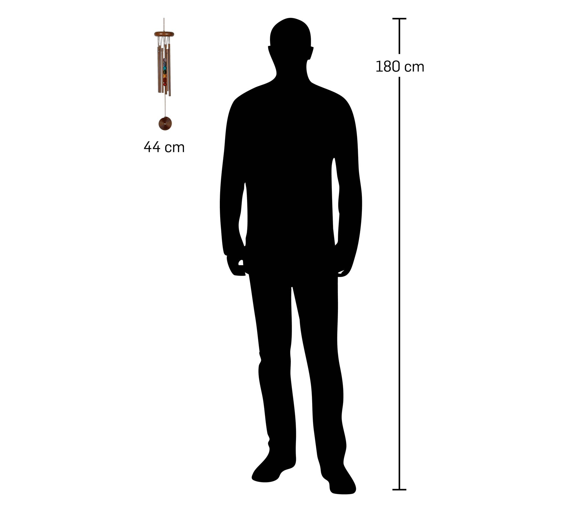 - Description: 44 cm overall length, 6 bronze aluminium rods, aluminium wind catcher, ash wood, stone accents