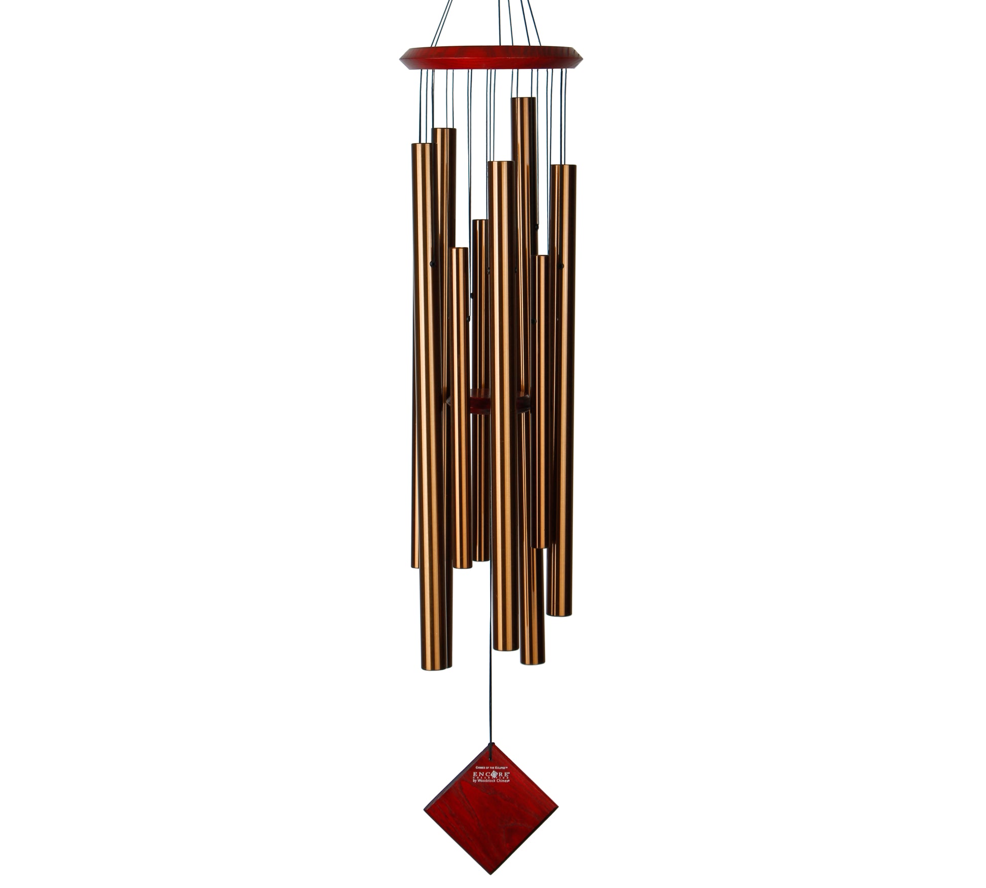 This handcrafted wind chime is tuned to a pentatonic universal scale. Designed to get the purest sound, it will play in concert with the wind to create a random symphony. Two different colours are available so that you can choose the one that suits best to your place. It harmonizes beautifully with all the other Encore collection chimes.