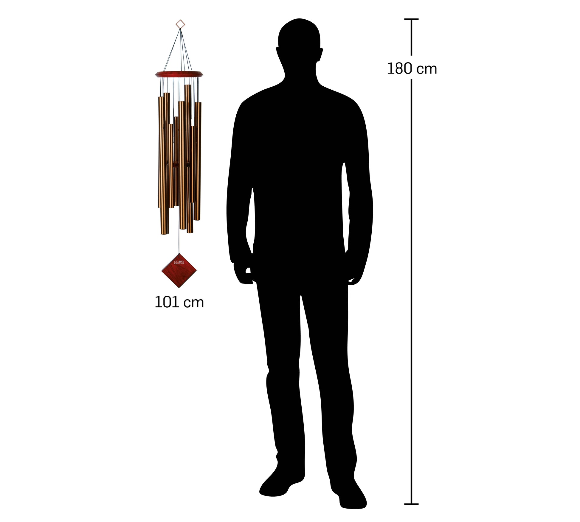 - Description: 101 cm overall length, 10 bronze aluminium tubes, bubinga finish wood. Removable windcatcher for easy customisation.