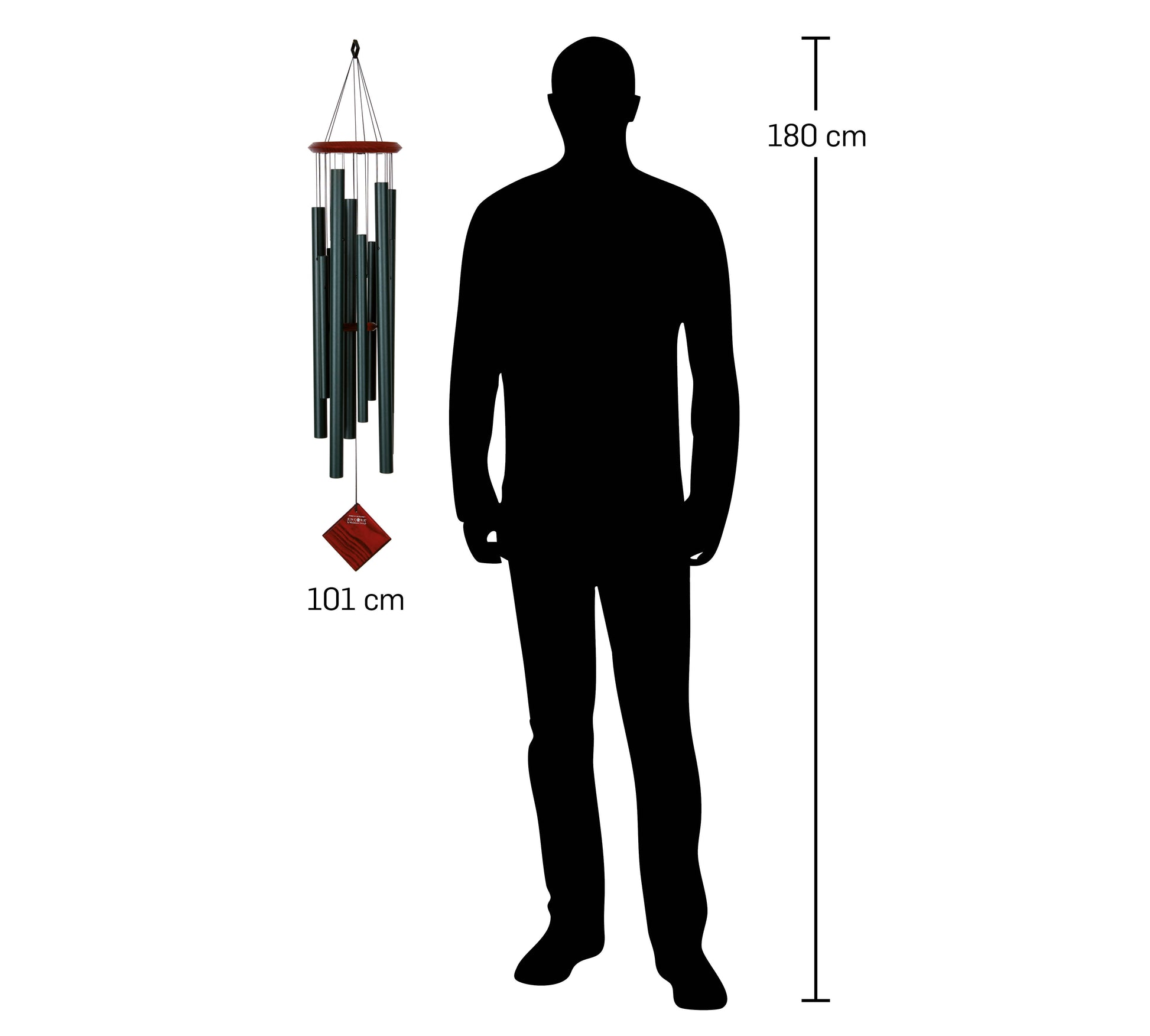 - Description: 101 cm overall length, 10 satin green aluminium tubes, bubinga finish wood. Removable windcatcher for easy customisation.