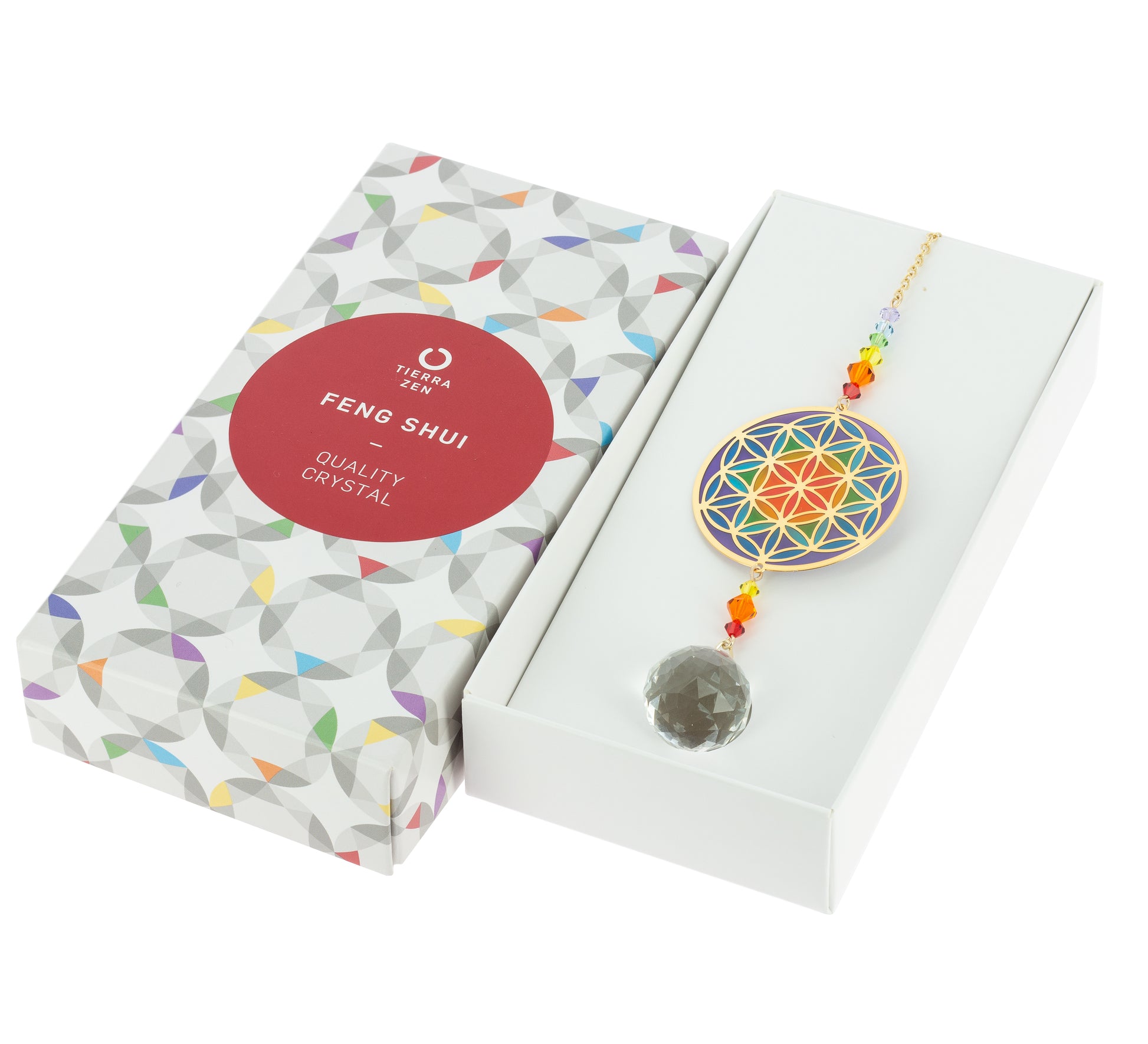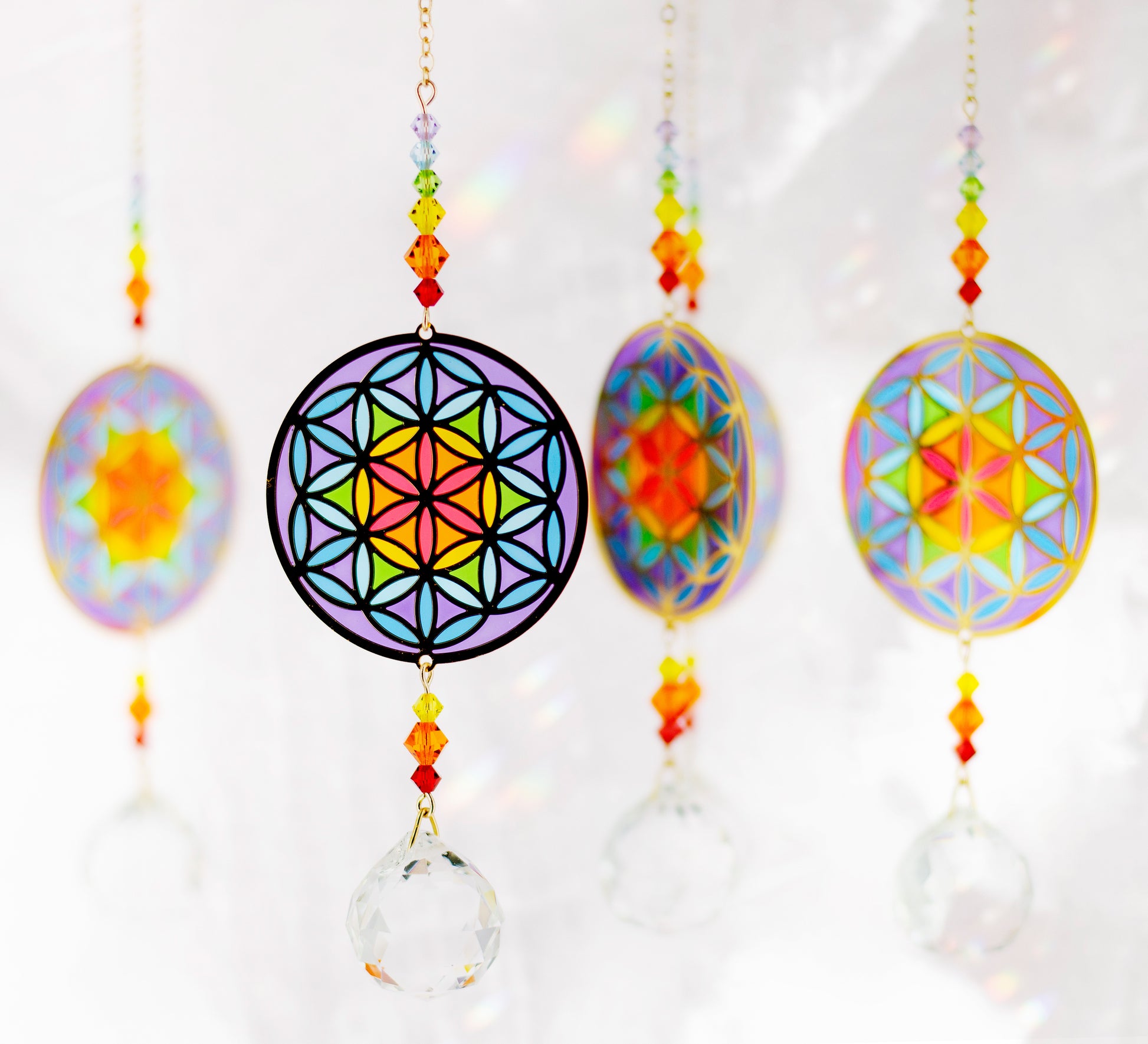 According to sacred geometry, the flower of life is a powerful symbol that represents creation, sacred unity and the interrelation between all beings. It helps to create harmony in the space where it is placed.Use of rainbow makers