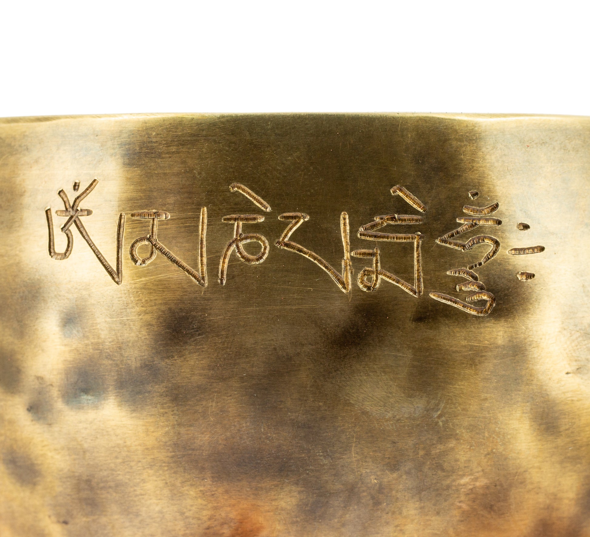 Made of 7 metals, the Full Moon singing bowl is a unique type of Tibetan singing bowl that is believed to hold special energetic qualities. The different metals and their planetary associations are Gold (Sun), Silver (Moon), Copper (Venus), Iron (Mars), Tin (Jupiter), Mercury (Mercury) and Lead (Saturn). The mantra of compassion Om Mani Padme Hum and the symbol of good fortune and longevity are engraved on the outside of this bowl, which is used during full moon ceremonies and other meditative practices.