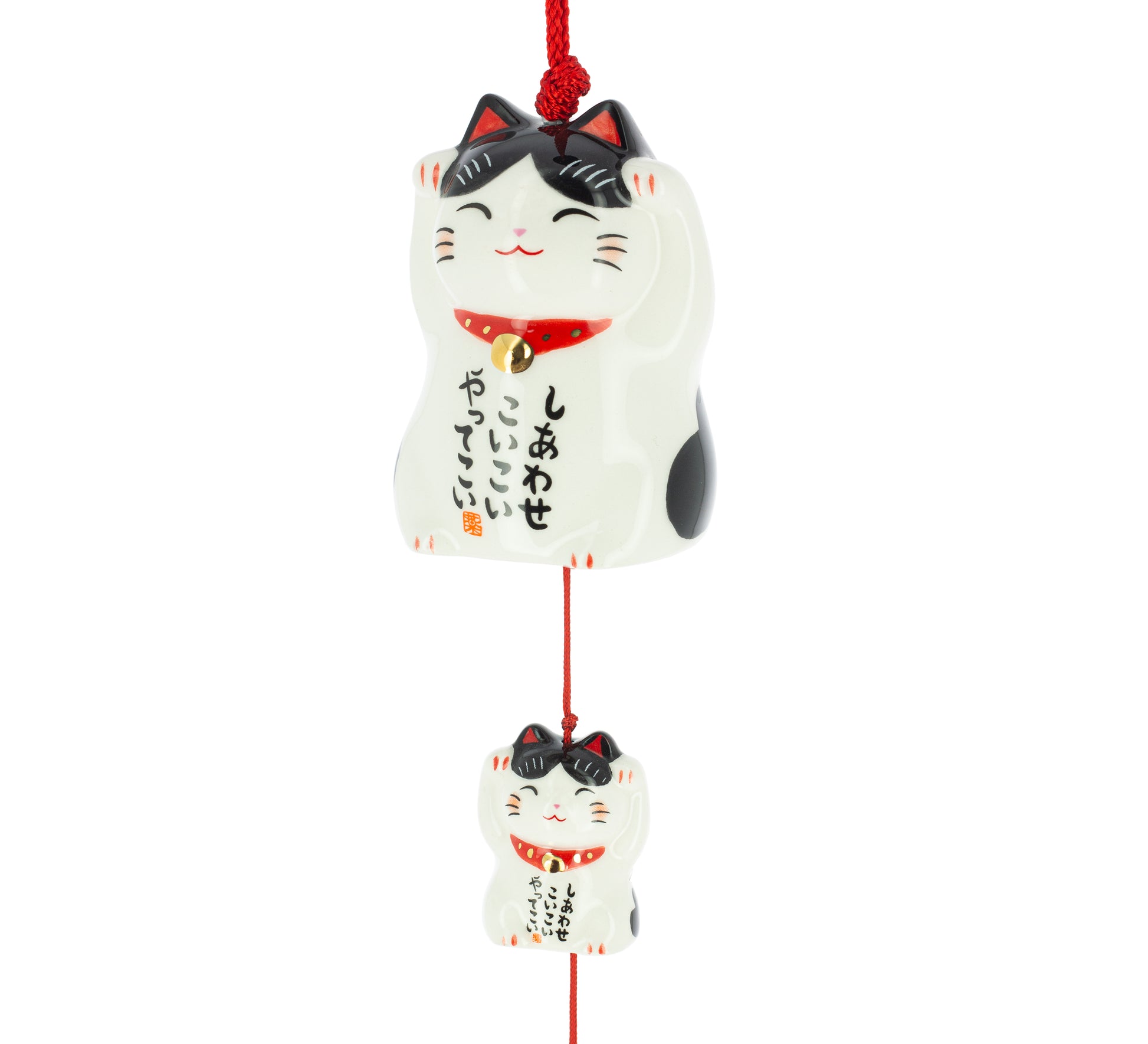 Furin Ceramic Bell Maneki Neko Kuroshiro