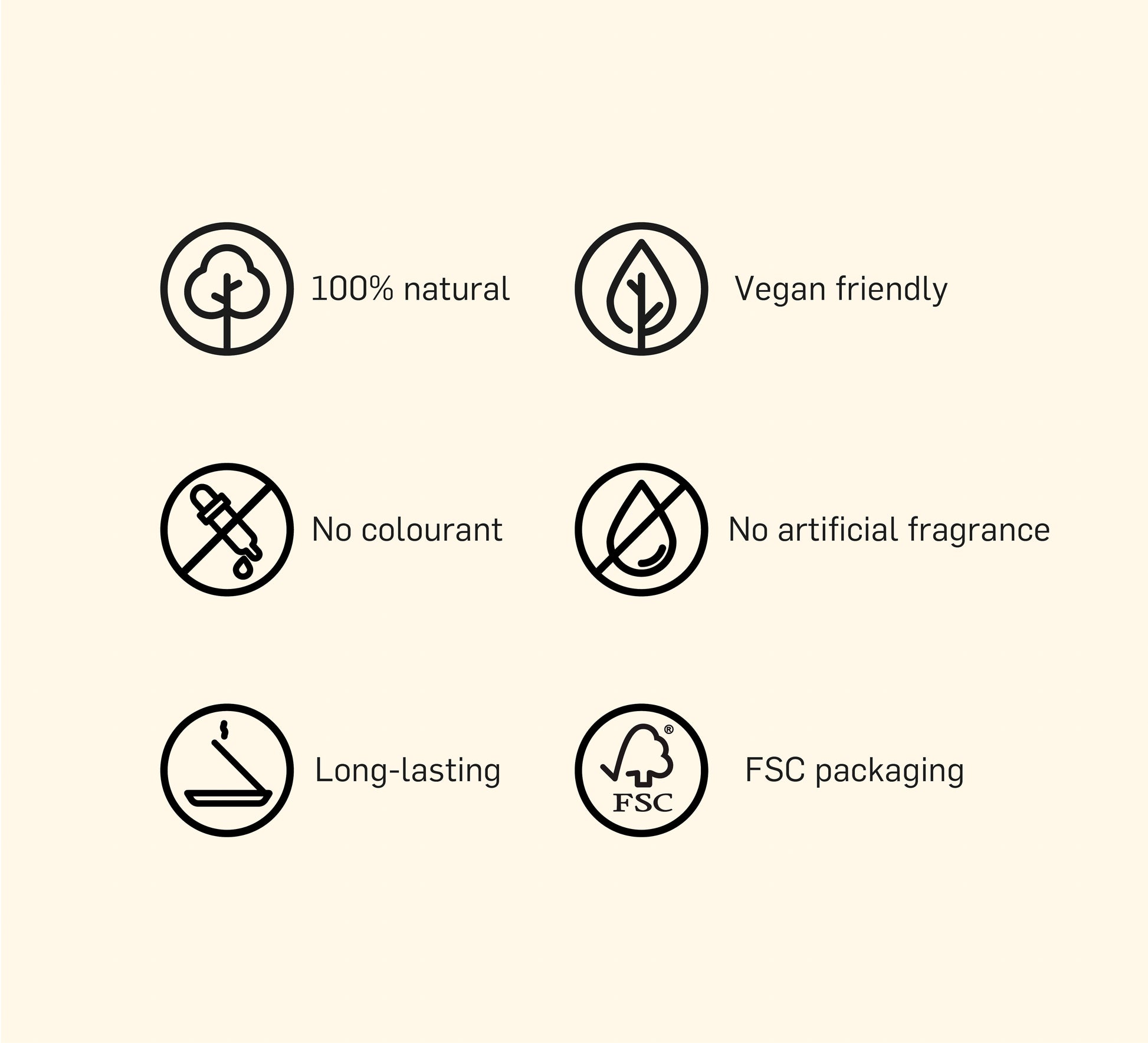 Enjoy high-quality raw materials with the convenience of a Japanese stick. The absence of bamboo support helps preserve the qualities and uniqueness of each ingredient. Let the magic happen with the nine scents we have carefully selected!