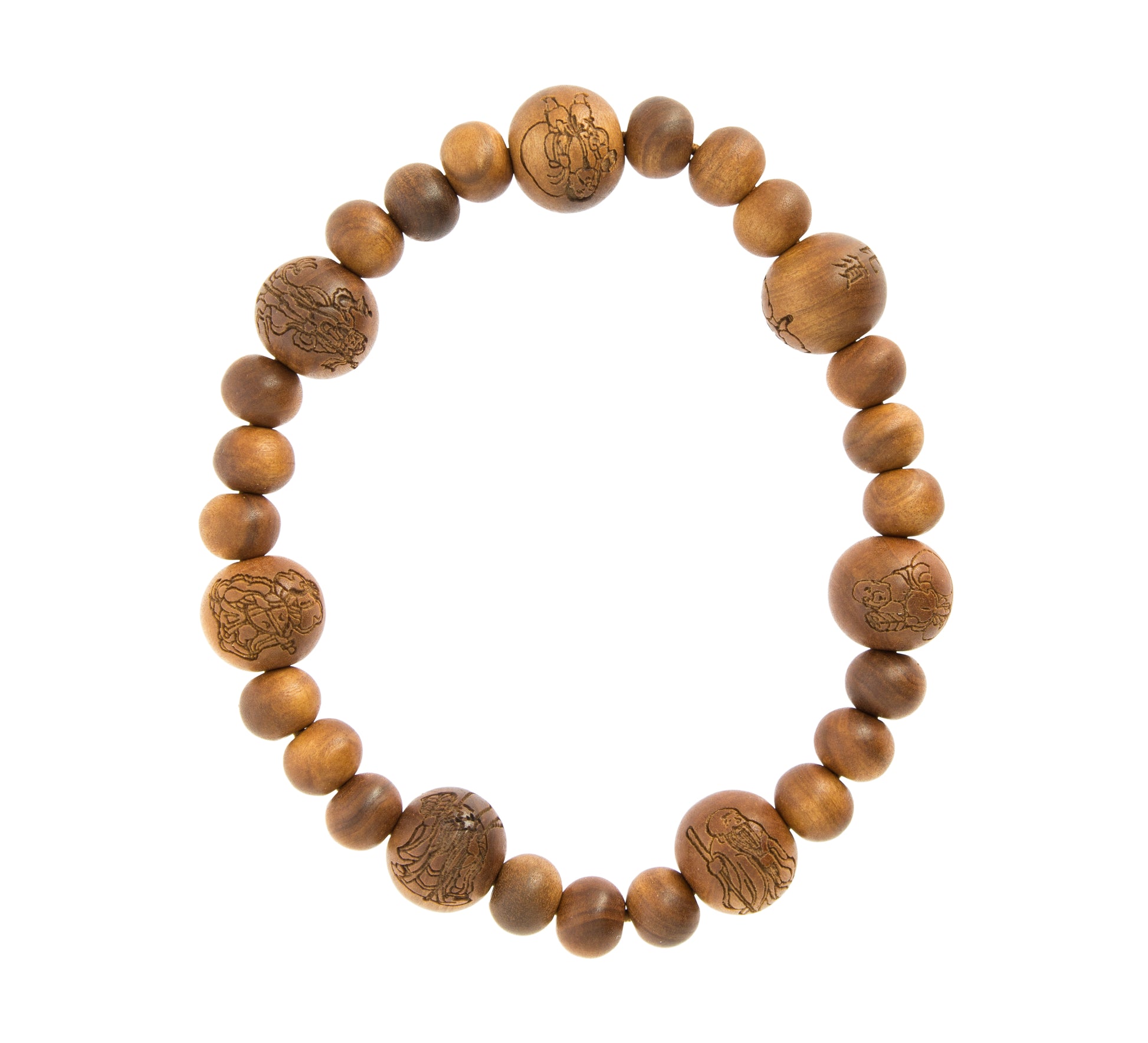 - Description: The 7 Gods of good fortune, sandalwood, Ø10 mm and 6 mm