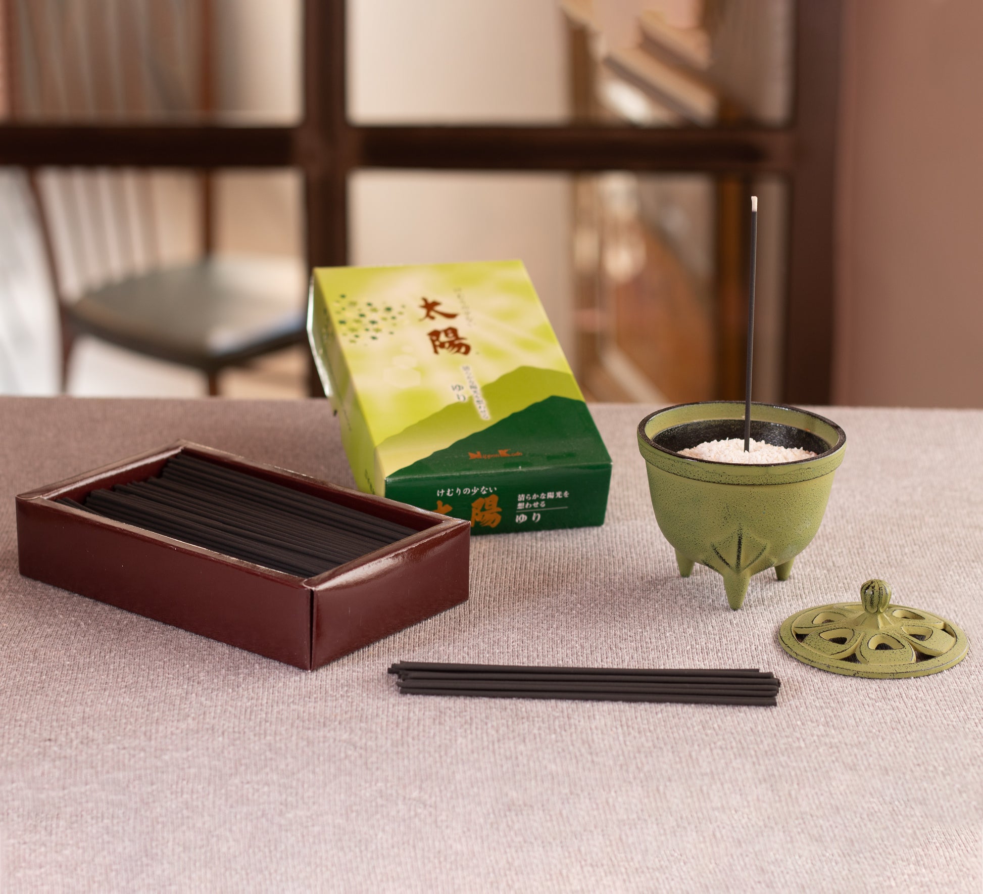 Branches swaying in the wind, dappled sunlight shining through the leaves, sunlight brings energy to nurture the life of all living things. Taiyo Lily incense has been created to evoke pure sunlight. This is a fresh incense with a sweet fragrance, reminiscent of the neat and prim lilies that bloom on the mountain sides on a sunny morning. Smokeless incense.