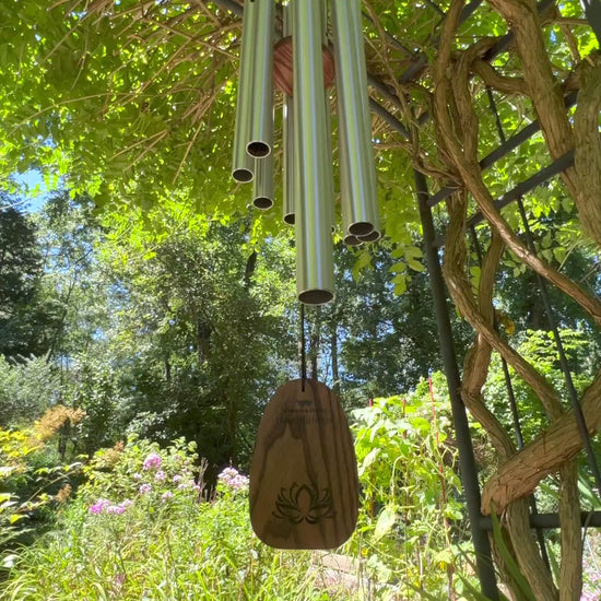 The Mindfulness Chime is tuned to an African scale and it features a delicate lotus flower on the wooden vane.