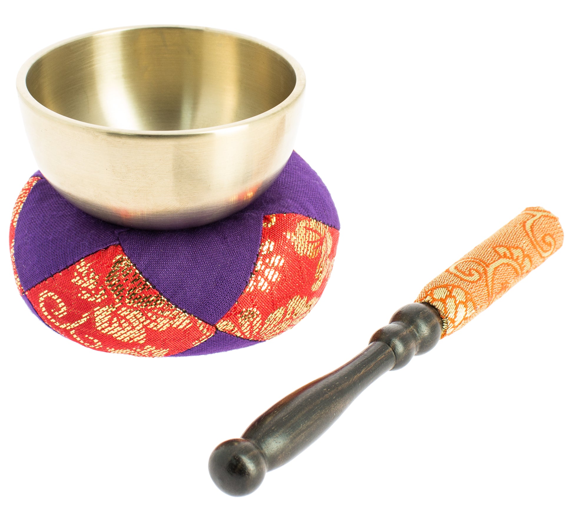 - Description: Alloy of copper, zinc and silicon. Set with bowl, mallet and brocade cushion. The cushion may be different from the one on the picture.