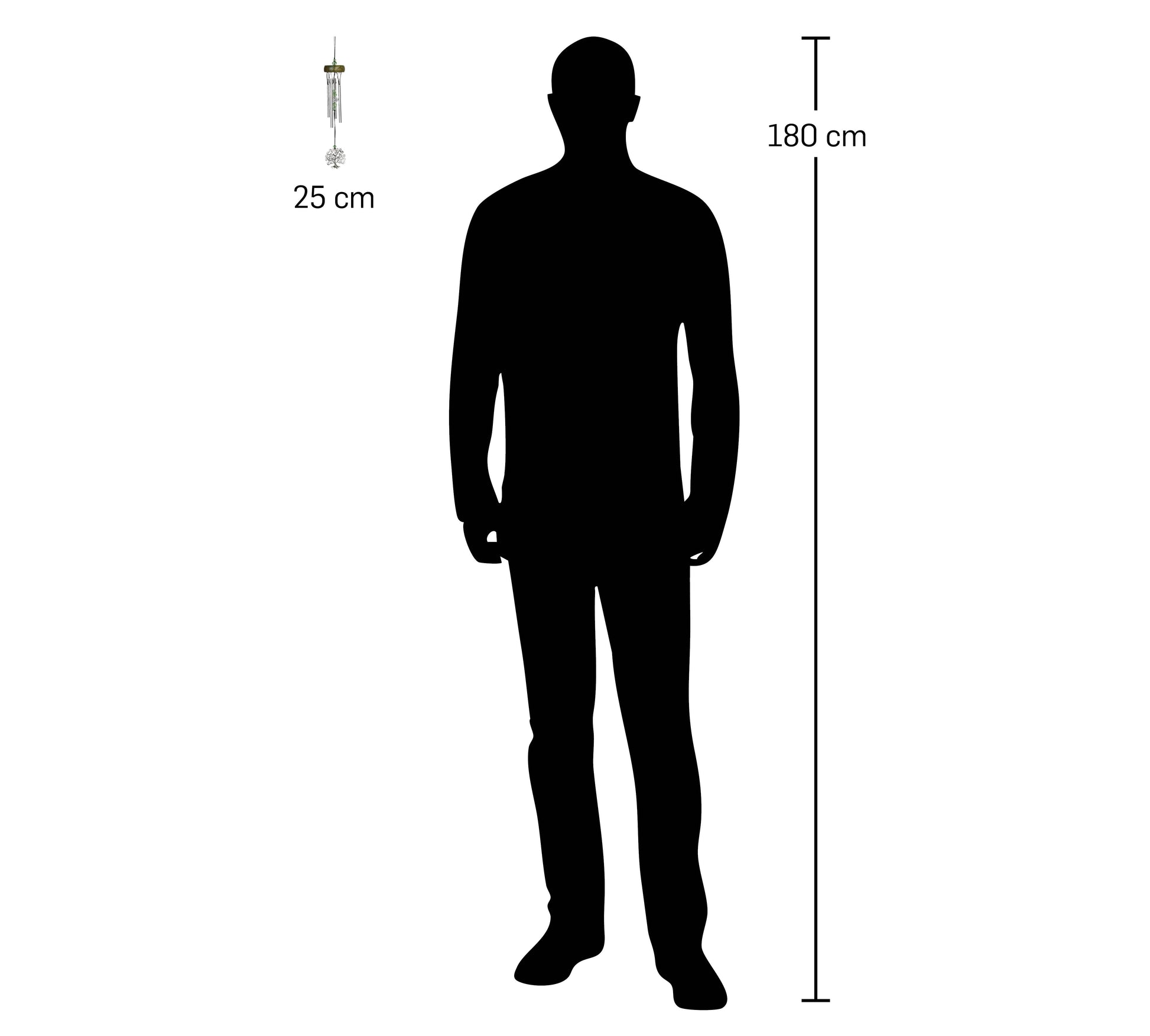 - Description: 25 cm overall length, 4 silver aluminium rods, crystals accents, nickel-plated brass decorative element, green wash finish ash wood