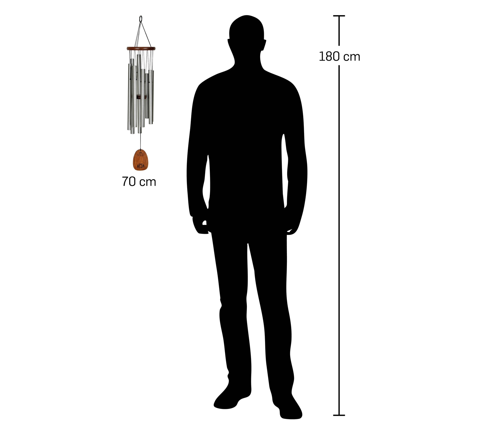 - Description: 70 cm overall length, 8 silver aluminium tubes, teak finish ash wood, removable windcatcher for easy costumization
