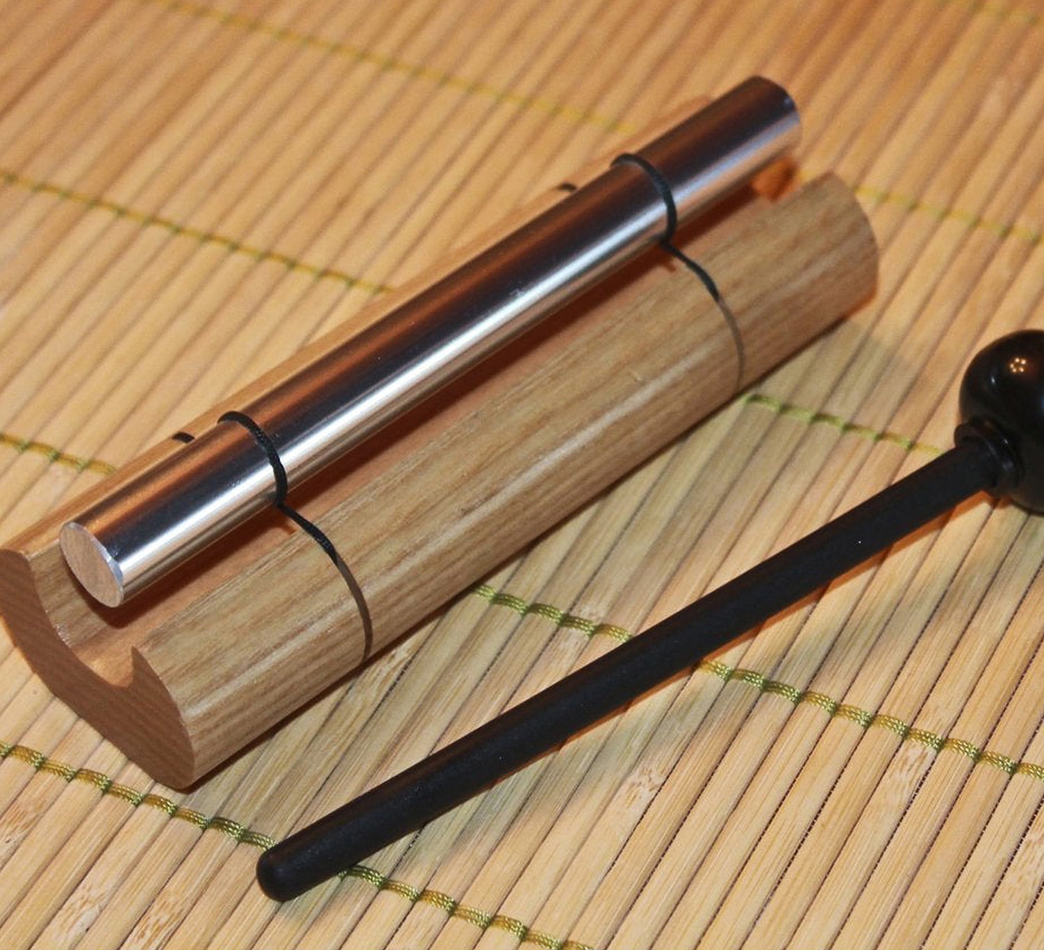 The Zenergy Chime - Mini is perfect to take with you while travelling. Be careful not to dampen the sound by letting the mallet rest on the rod after striking it.