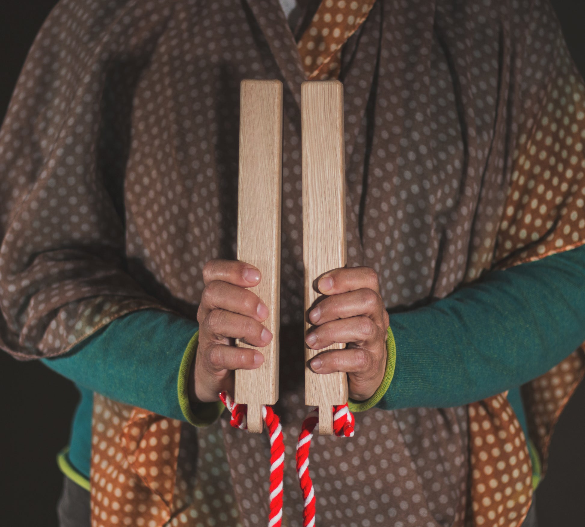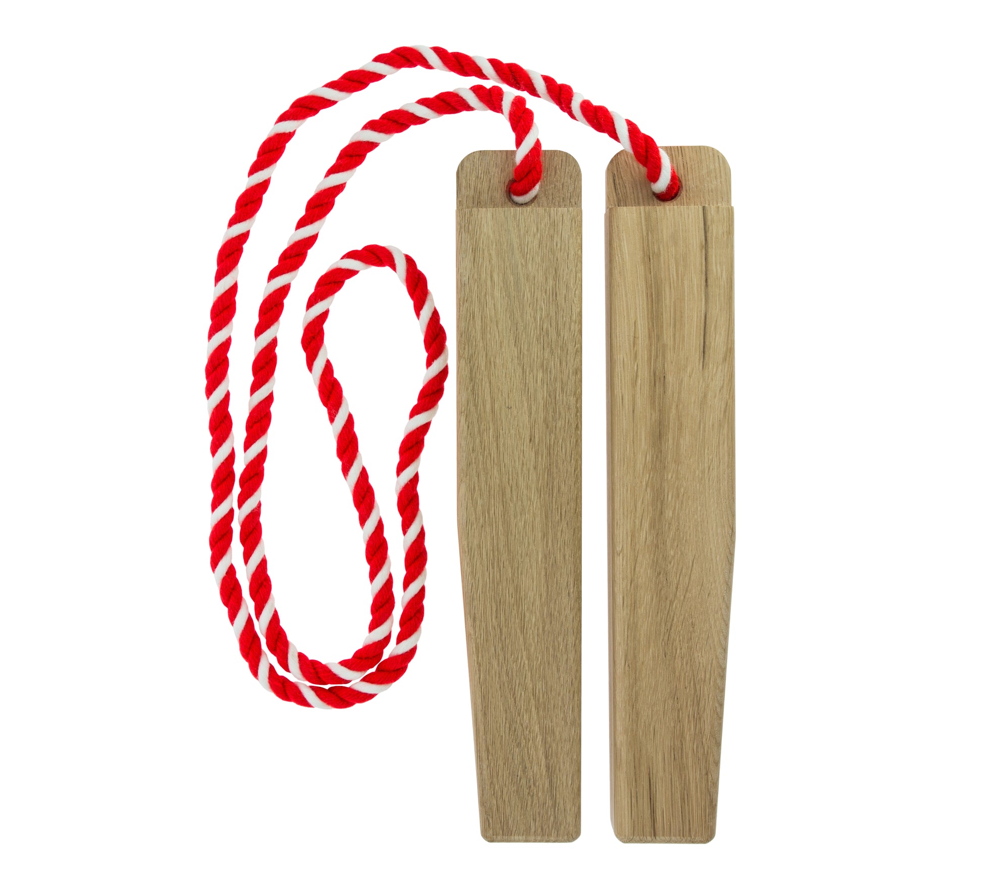 • Description: Ipe wood, 28 x 5,5 cm each clacker, cord 1,1 m.