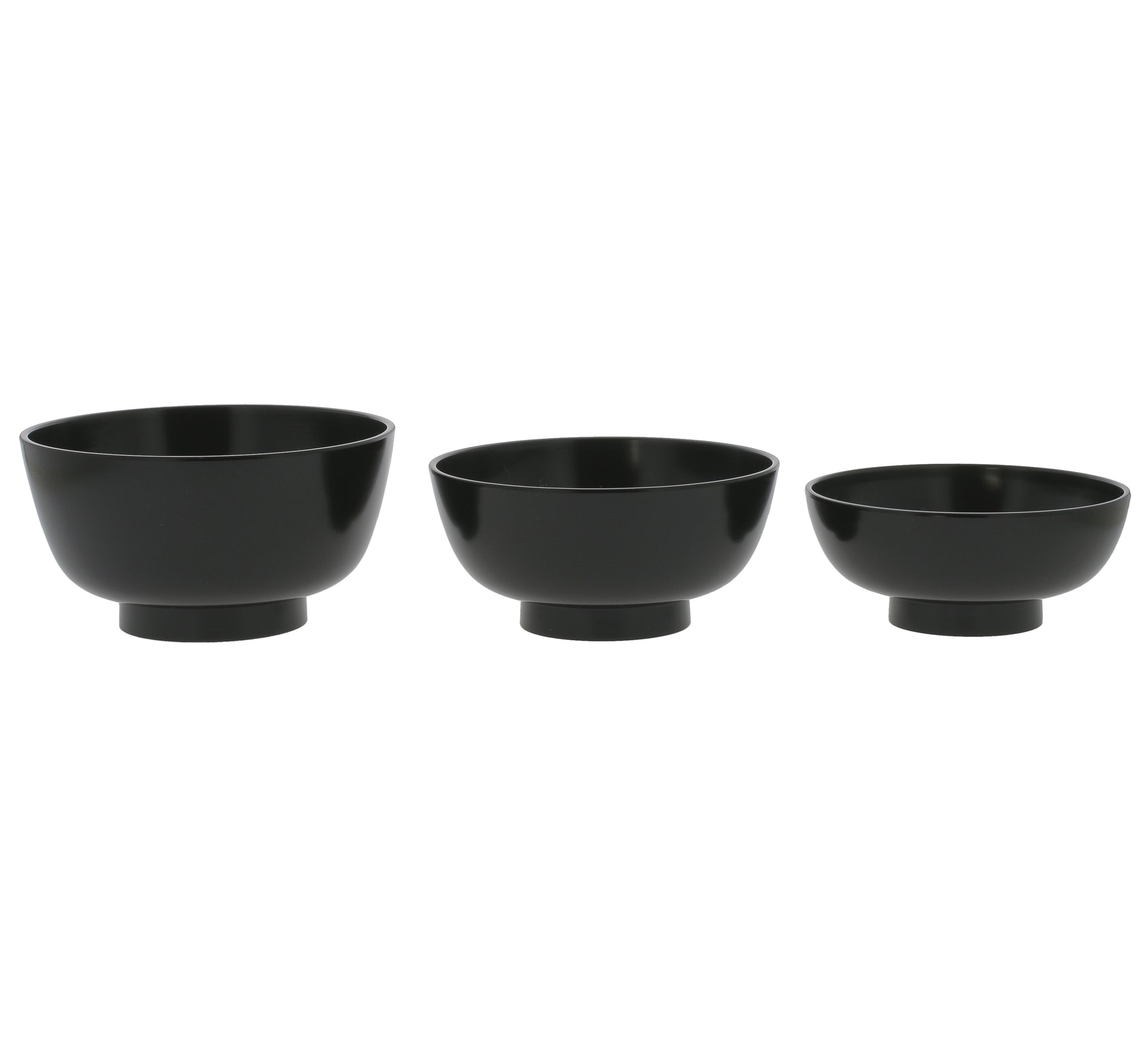 - Description: Three black lacquered bakelite bowls, suitable for feeding purposes. Ø 12, 11 y 9,7 cm.