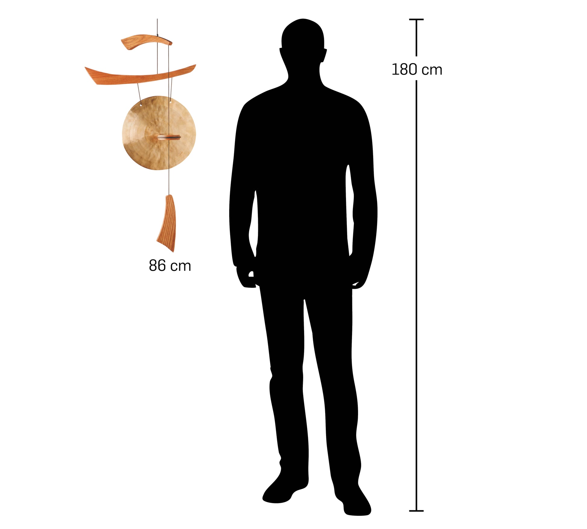 - Description: 86 cm overall length, 25 cm Ø, cherry finish ash wood, brass gong