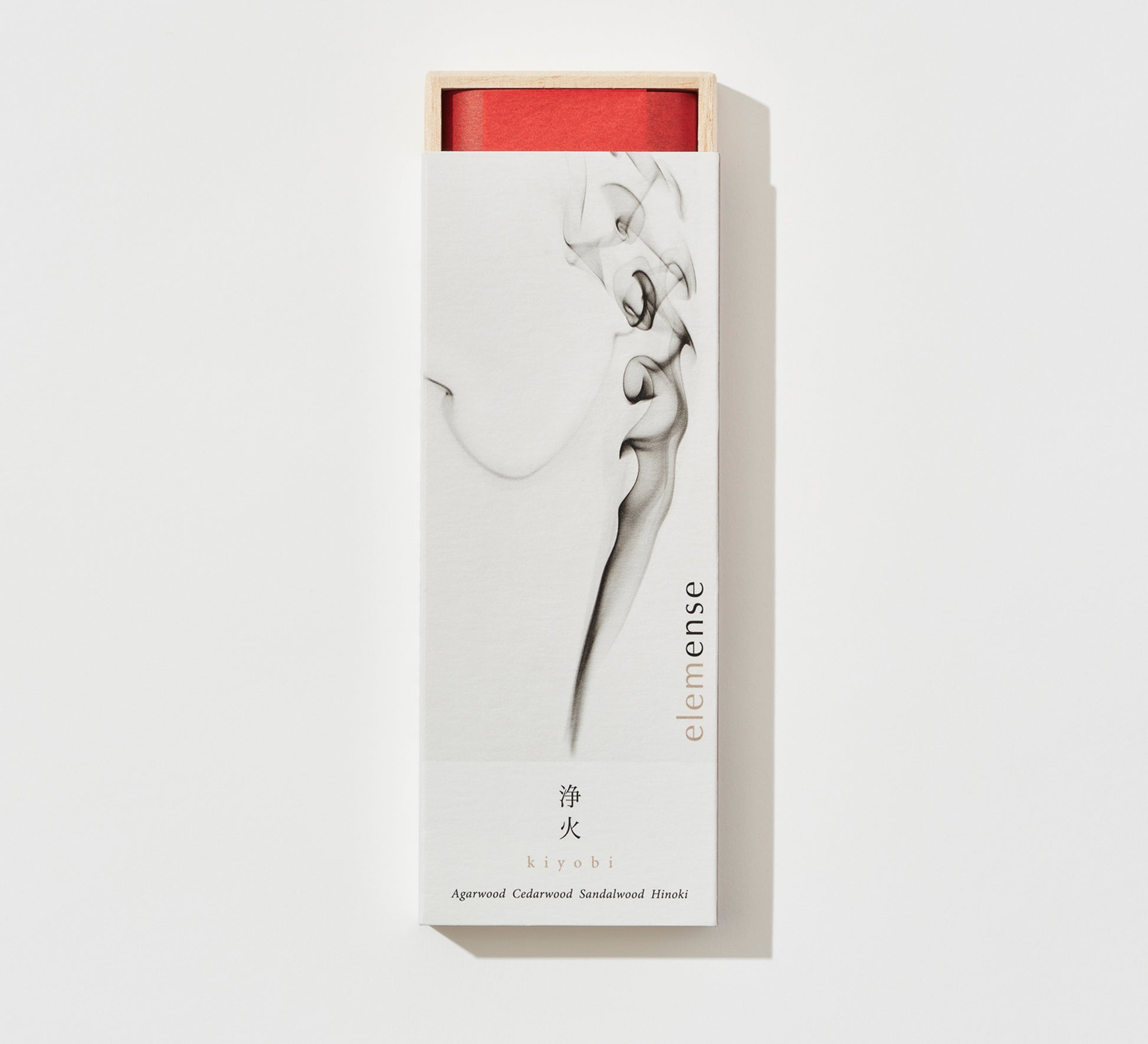 Kiyobi is inspired by the “Fire” element. The fragrance starts with the radiant purity of coniferous hinoki, then it releases the sweetness of sandalwood and agarwood. It is gentle and cool as it fades.