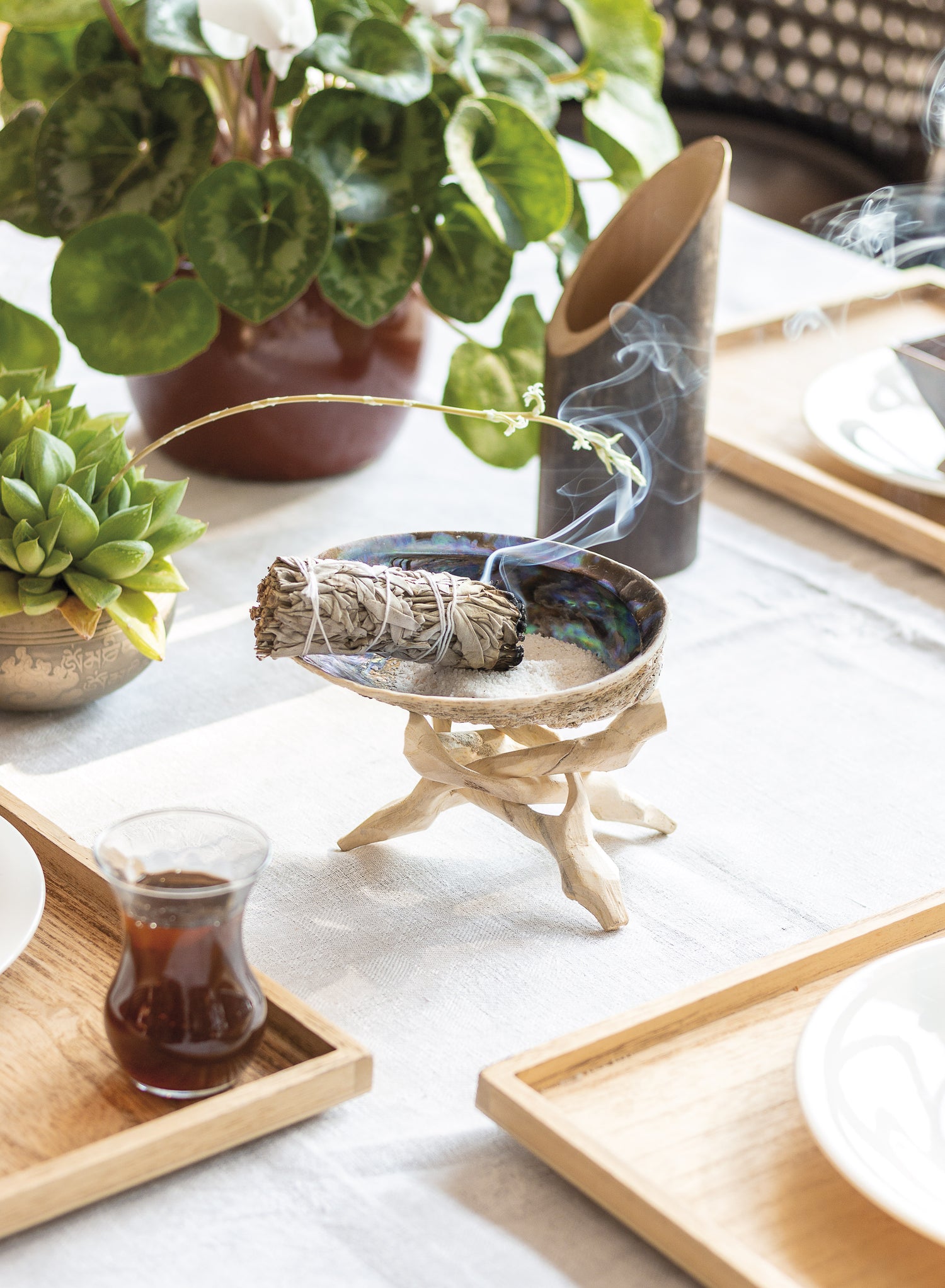 Doing a smudging ritual is much more than lighting aromatic herbs: it’s a mindful act that connects you with the sacred. Before you begin, focus your attention on the intention of cleansing or blessing. Then, follow these steps to guide the smoke and the energy where you need it most.