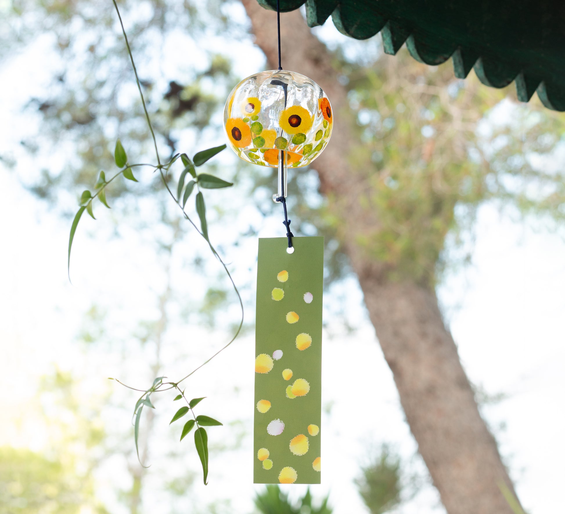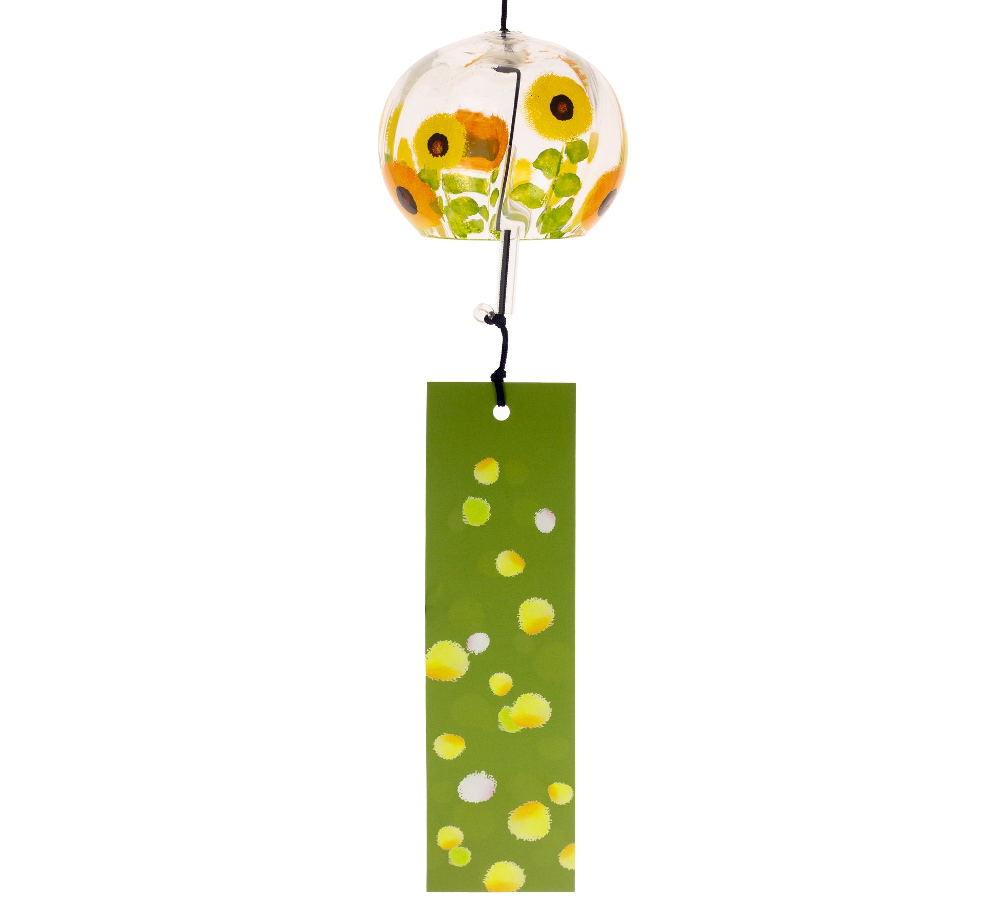 La furin es una campana de viento tradicional japonesa símbolo del verano ya que, durante los días húmedos y calurosos, su sonido refrescante alivia. Esta furin de vidrio soplado, fabricada y pintada a mano en Japón, está diseñada para que el vidrio sea más grueso en la boca, lo que mejora su timbre.
