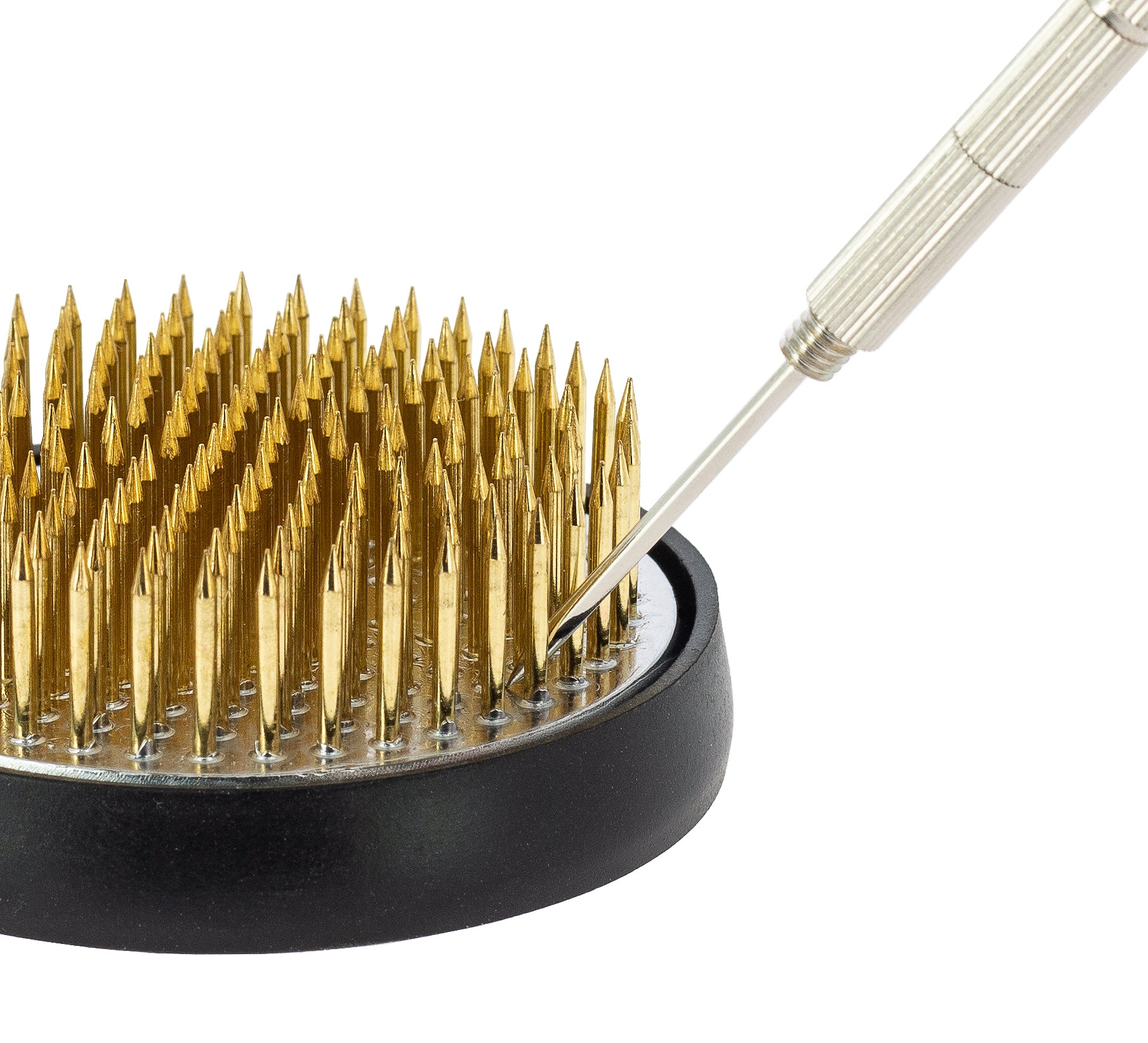 El arte floral japonés ikebana se conoce también como Kado, el camino de las flores. El punzón fino sirve para eliminar restos vegetales del kenzan, el grueso para enderezar sus púas.