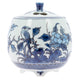 Este incensario monocromático viene decorado con peonías -botan en japonés- y pájaros. El degradado azul sobre fondo blanco y el esmalte brillante le confieren un aspecto sobrio y a la vez lujoso. En Japón las peonías representan riqueza y prosperidad. Se regalan deseando buena suerte y éxito en los estudios y los negocios.