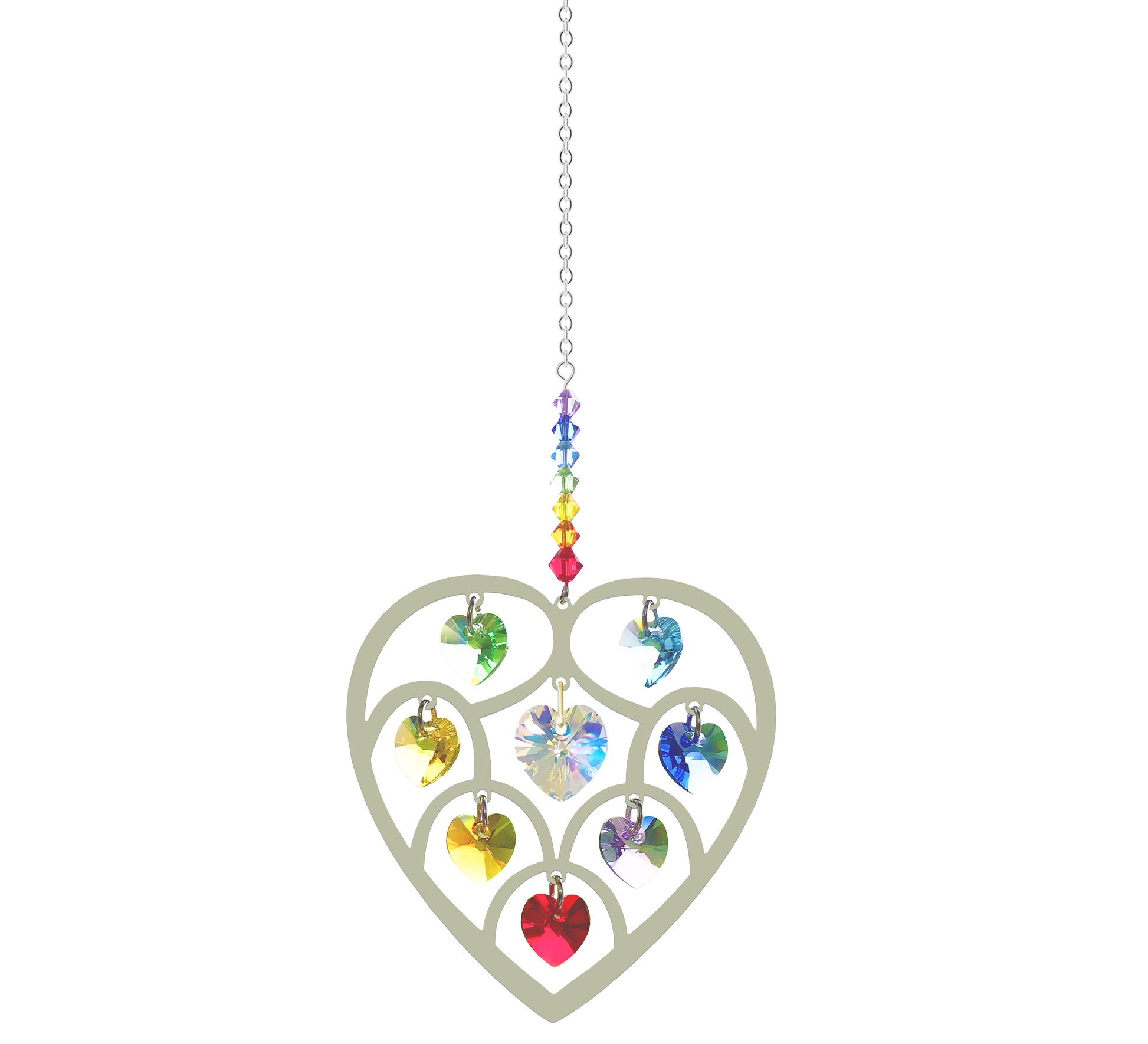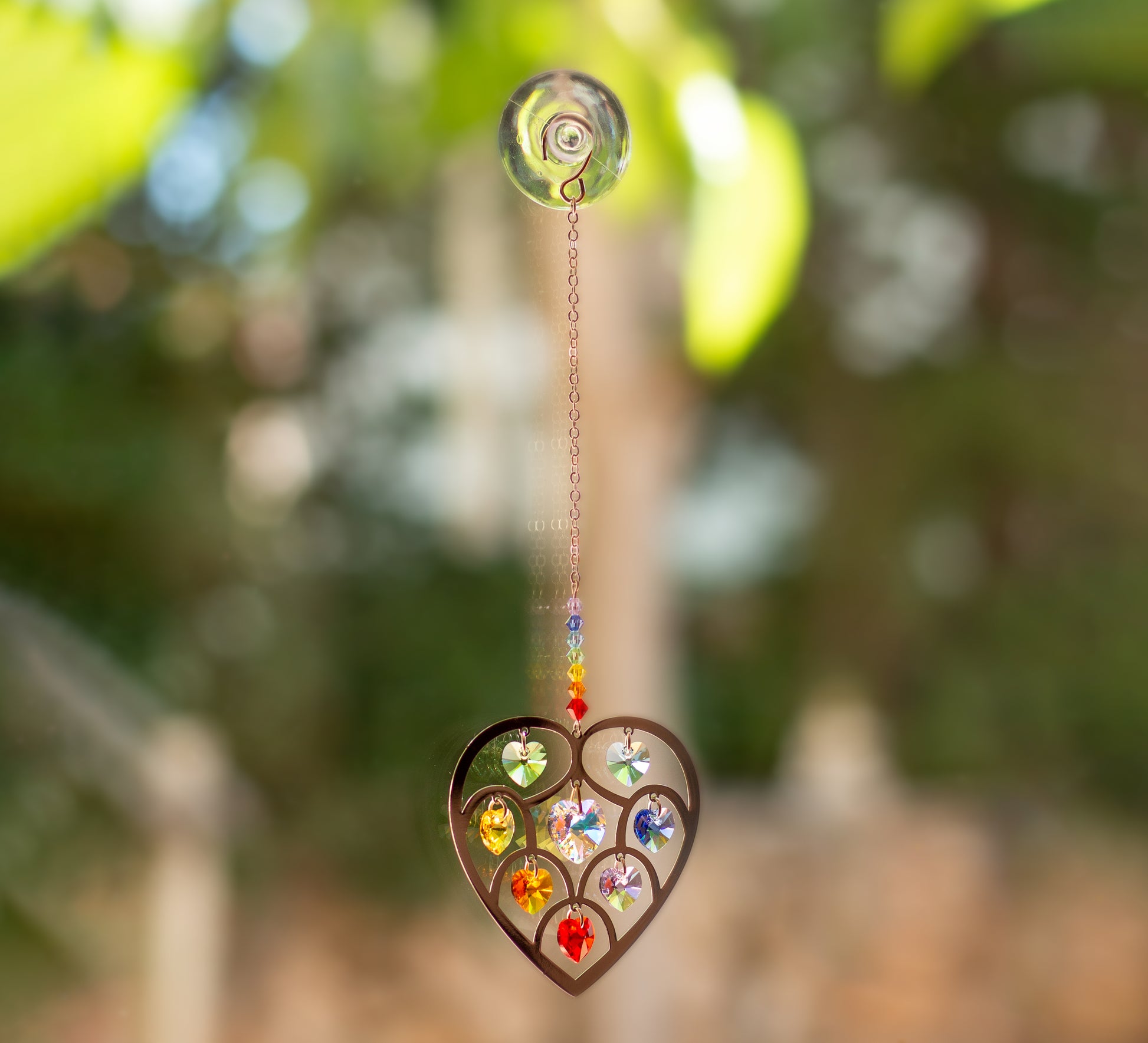 Este adorno para tu hogar combina dos elementos altamente simbólicos: el corazón, símbolo de amor, y los siete chakras.