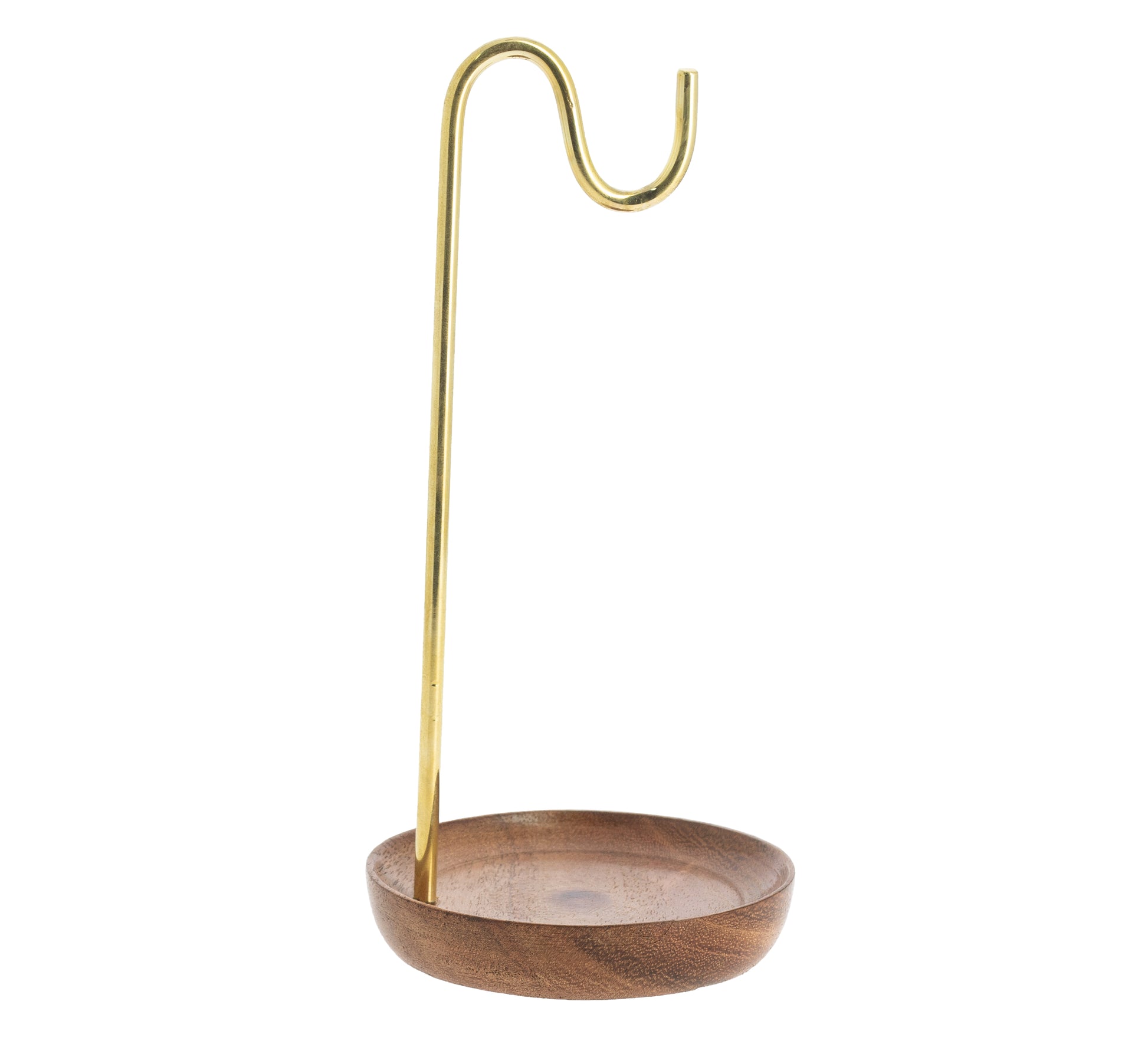 - Descripción: Ø 7,5 x 15 cm, latón y madera de acacia natural. Hecho artesanalmente y servido en una caja de regalo.
