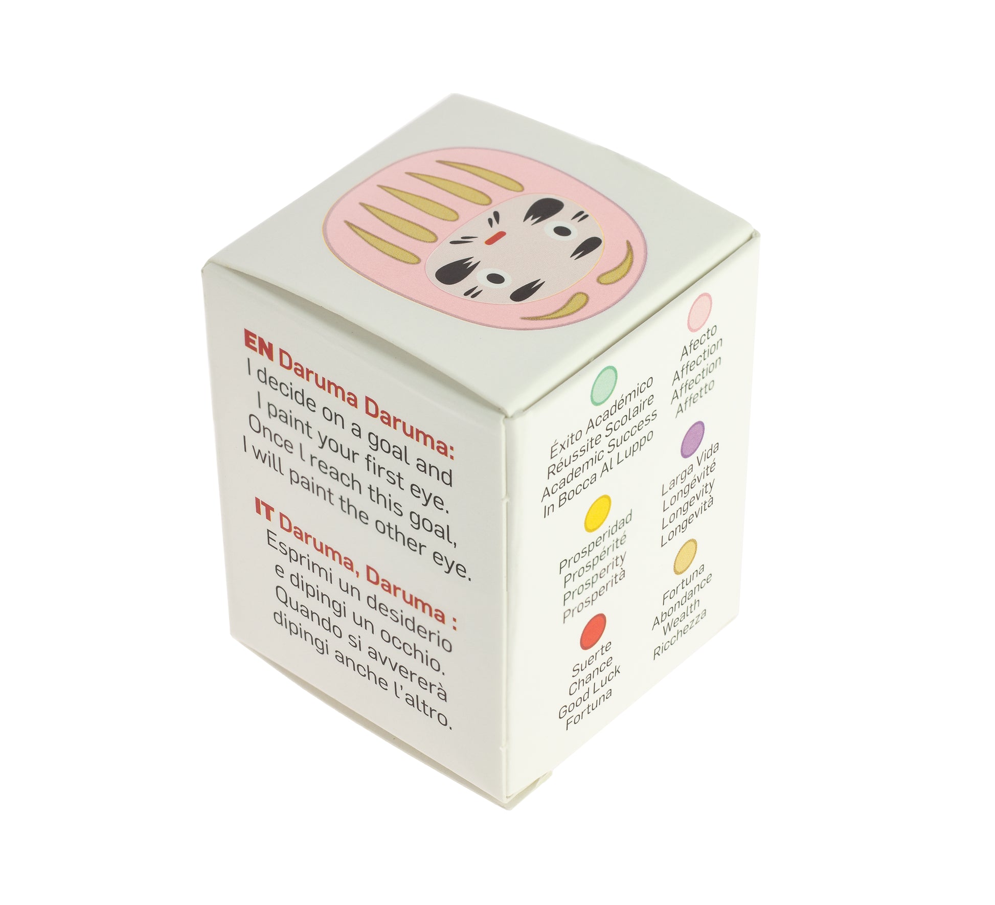 Au Japon, le Daruma dure un an - que l’on atteigne son objectif ou pas - et chaque 18 janvier, des milliers de figurines usagées sont brûlées dans les temples. En Europe, profitez de la Saint Jean ou de votre fête préférée pour faire ce rituel. Vous pourrez ensuite choisir d’autres Darumas pour vos nouveaux objectifs.Ce Daruma a été conçu au Japon et fabriqué au Vietnam avec du papier recyclé du Japon.