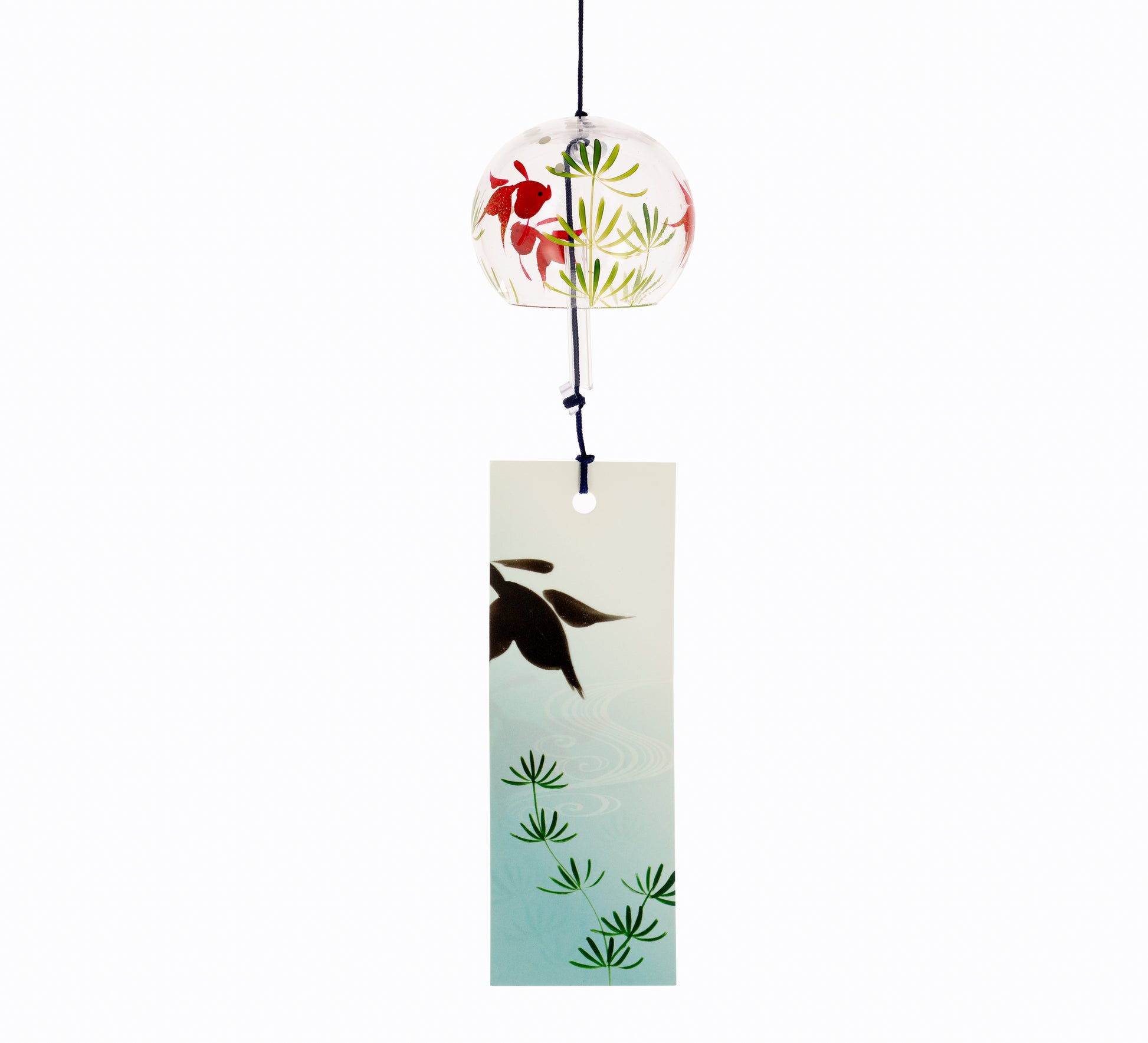 Les motifs décoratifs sur ces furins en verre évoquent souvent des éléments saisonniers ou des images rafraîchissantes, comme cette carpe dorée, symbole de persévérance et de chance.