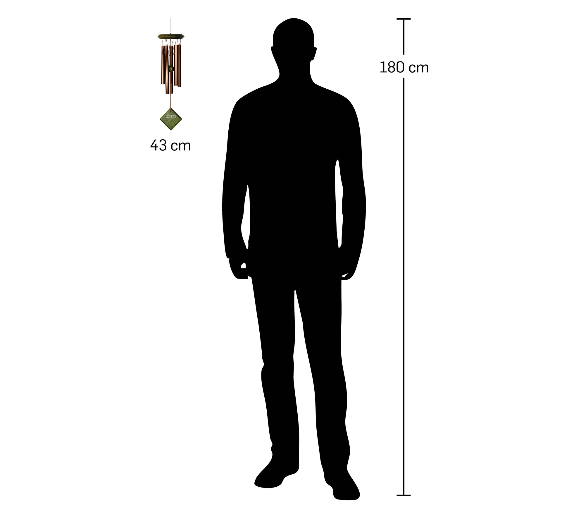 - Description: Hauteur totale de 43 cm, 5 tubes en aluminium de couleur bronze, bois de couleur verte. La girouette est amovible afin que vous puissiez personnaliser votre carillon si vous le souhaitez.