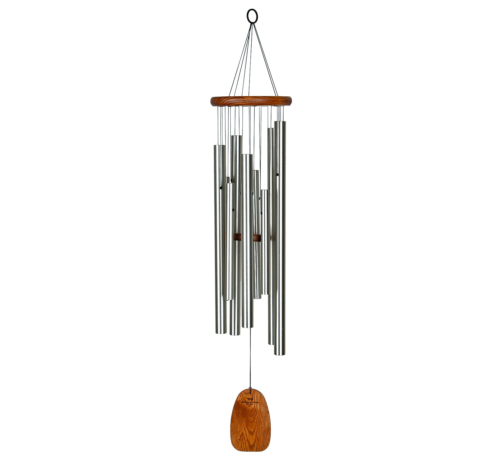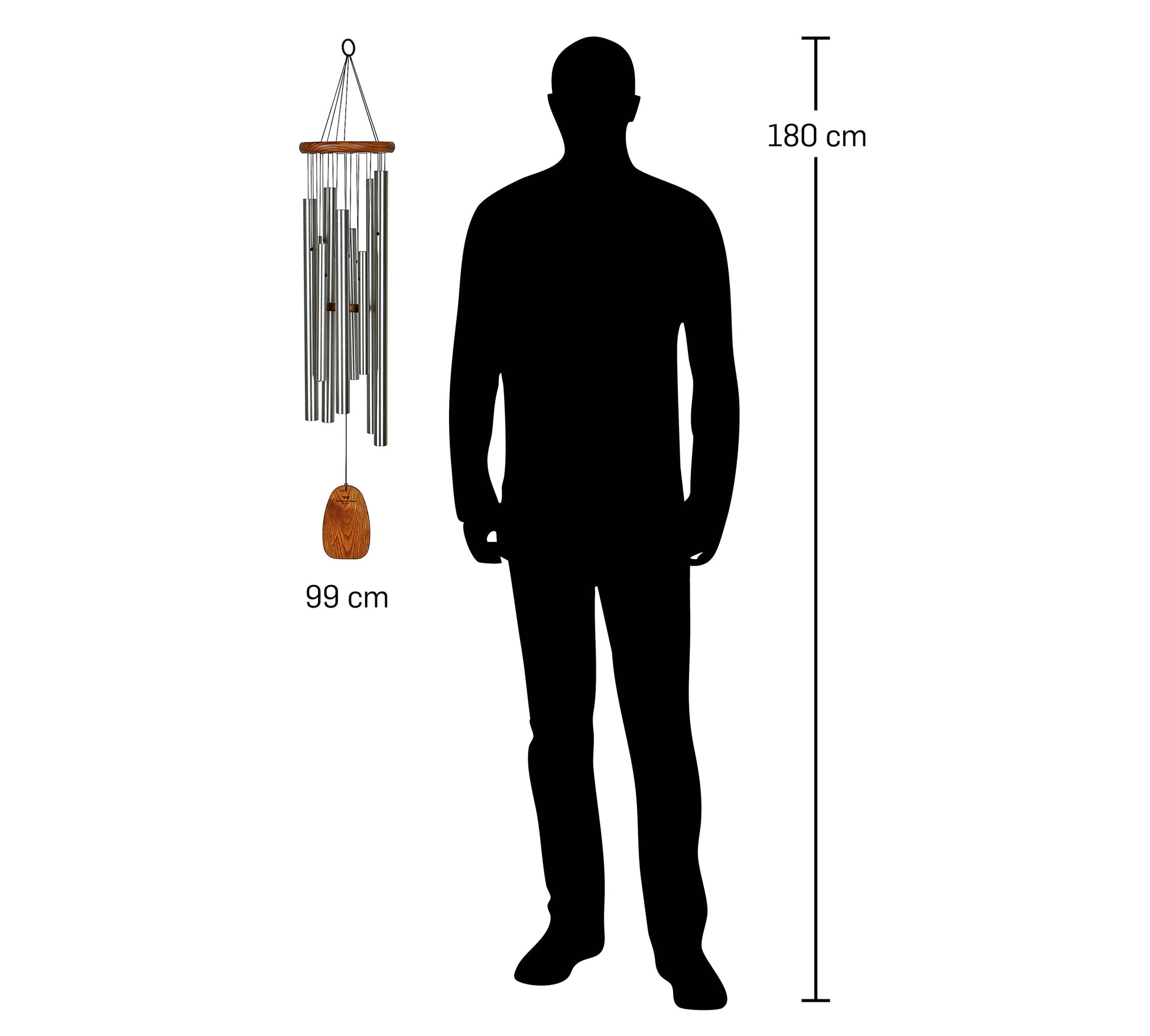 - Description: Hauteur totale de 99 cm, 11 tubes en aluminium argenté, bois de frêne avec finition teck. La girouette est amovible afin que vous puissiez personnaliser votre carillon si vous le souhaitez.