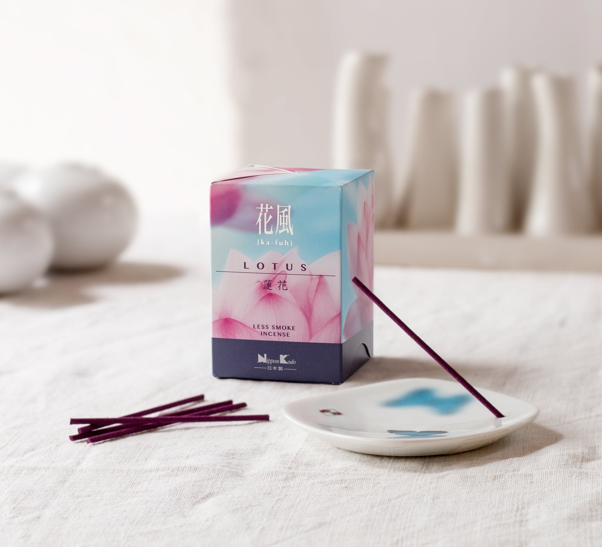 Ka (parfum) fuh (vent), l’arôme des fleurs dans le vent, est une collection d’encens japonais fabriqués avec des ingrédients naturels par les maîtres artisans de Nippon Kodo. Imaginez les rayons du soleil qui passent entre les feuilles d’une forêt après la pluie, alors que le parfum des fleurs se répand dans l’air. Si vous recherchez des senteurs suaves émettant peu de fumée, l’encens Ka Fuh est fait pour vous.