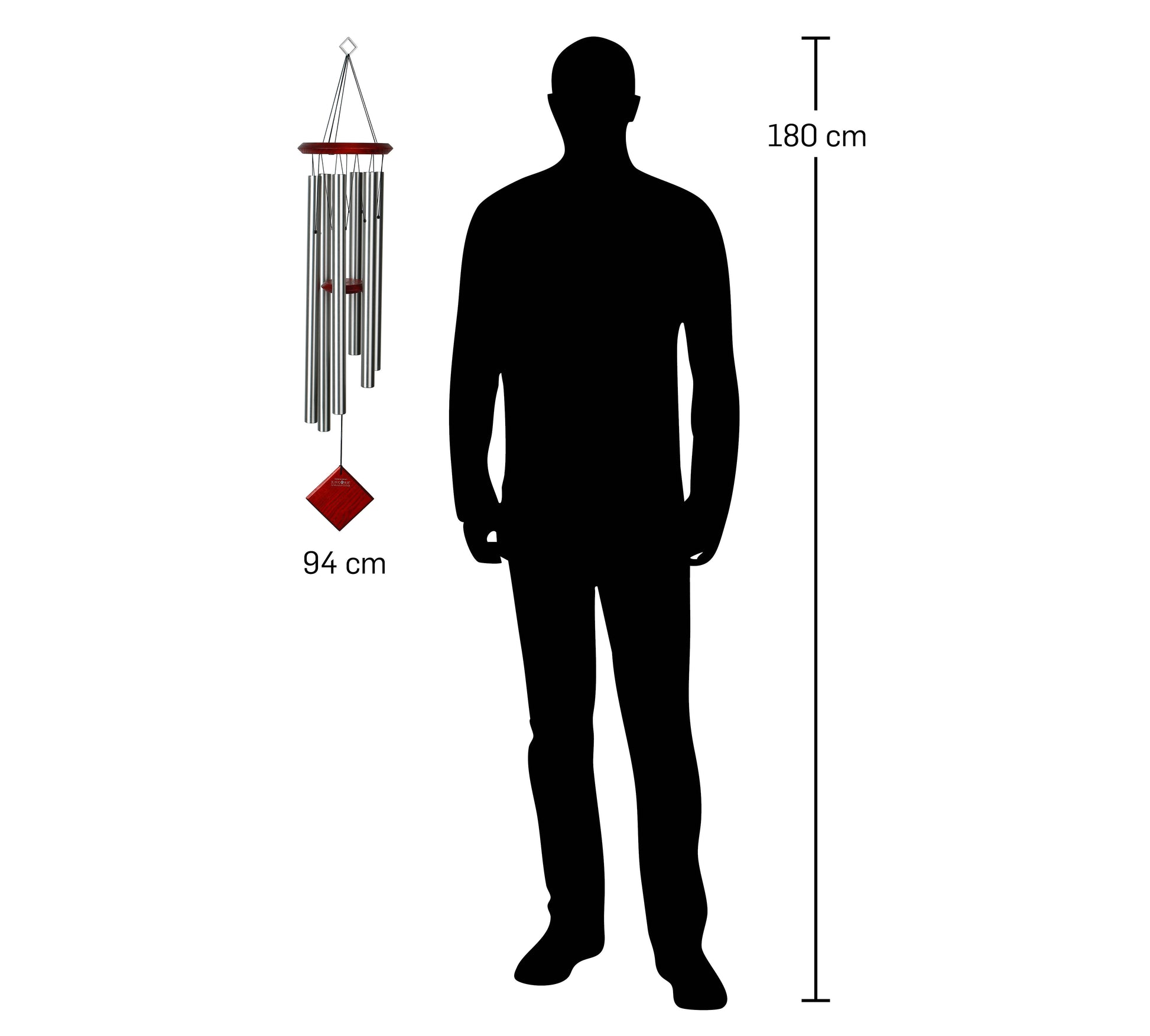 - Description: Hauteur totale de 94 cm, 6 tubes en aluminium argenté, bois avec finition bubinga. La girouette est amovible afin que vous puissiez personnaliser votre carillon si vous le souhaitez.