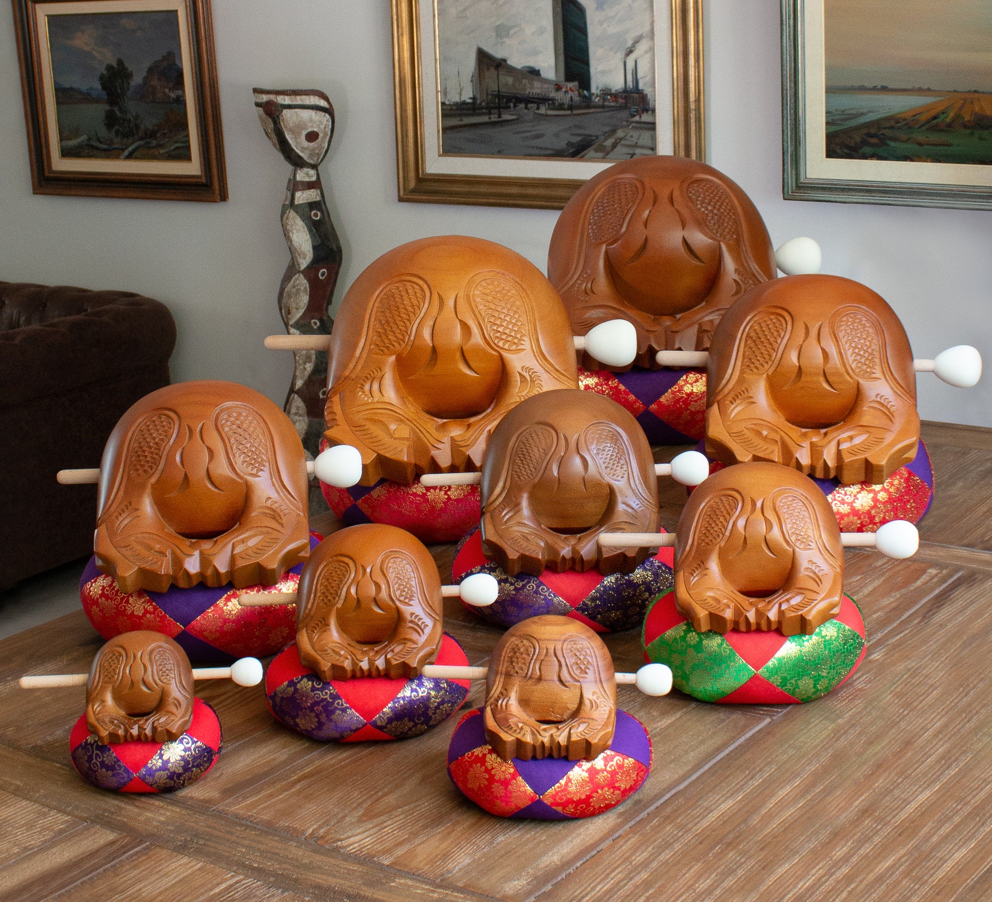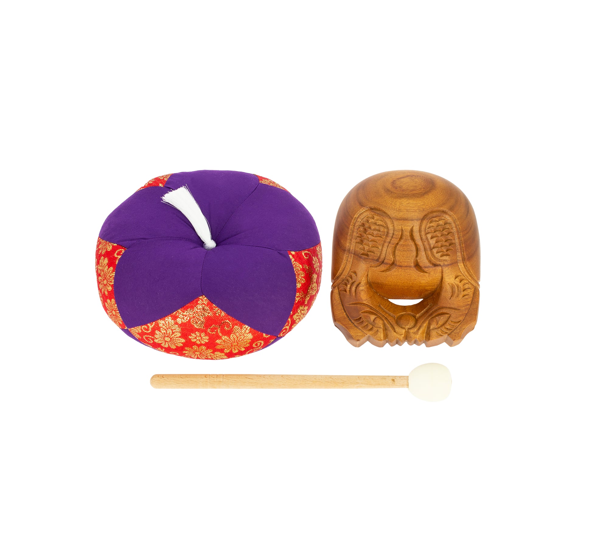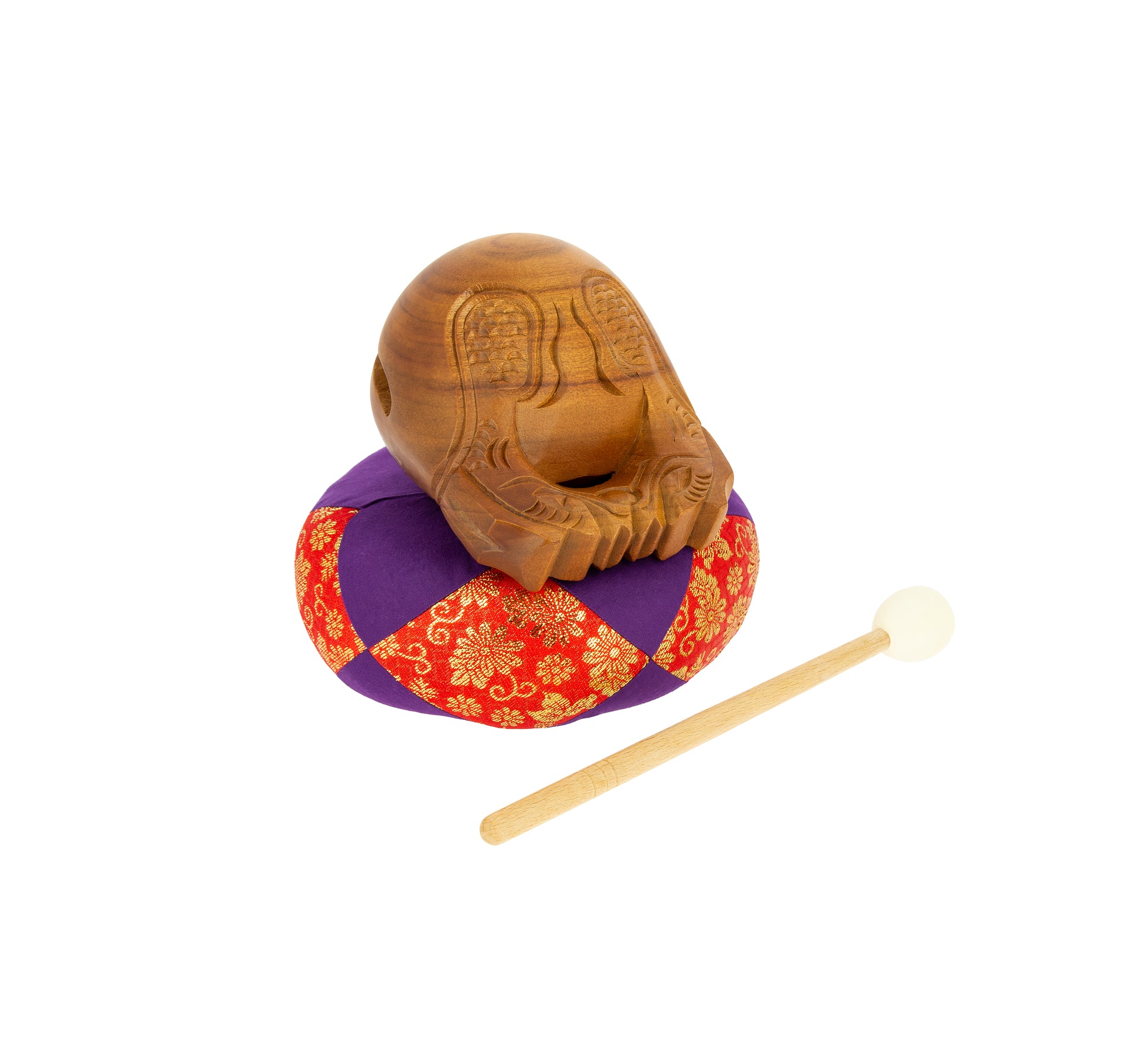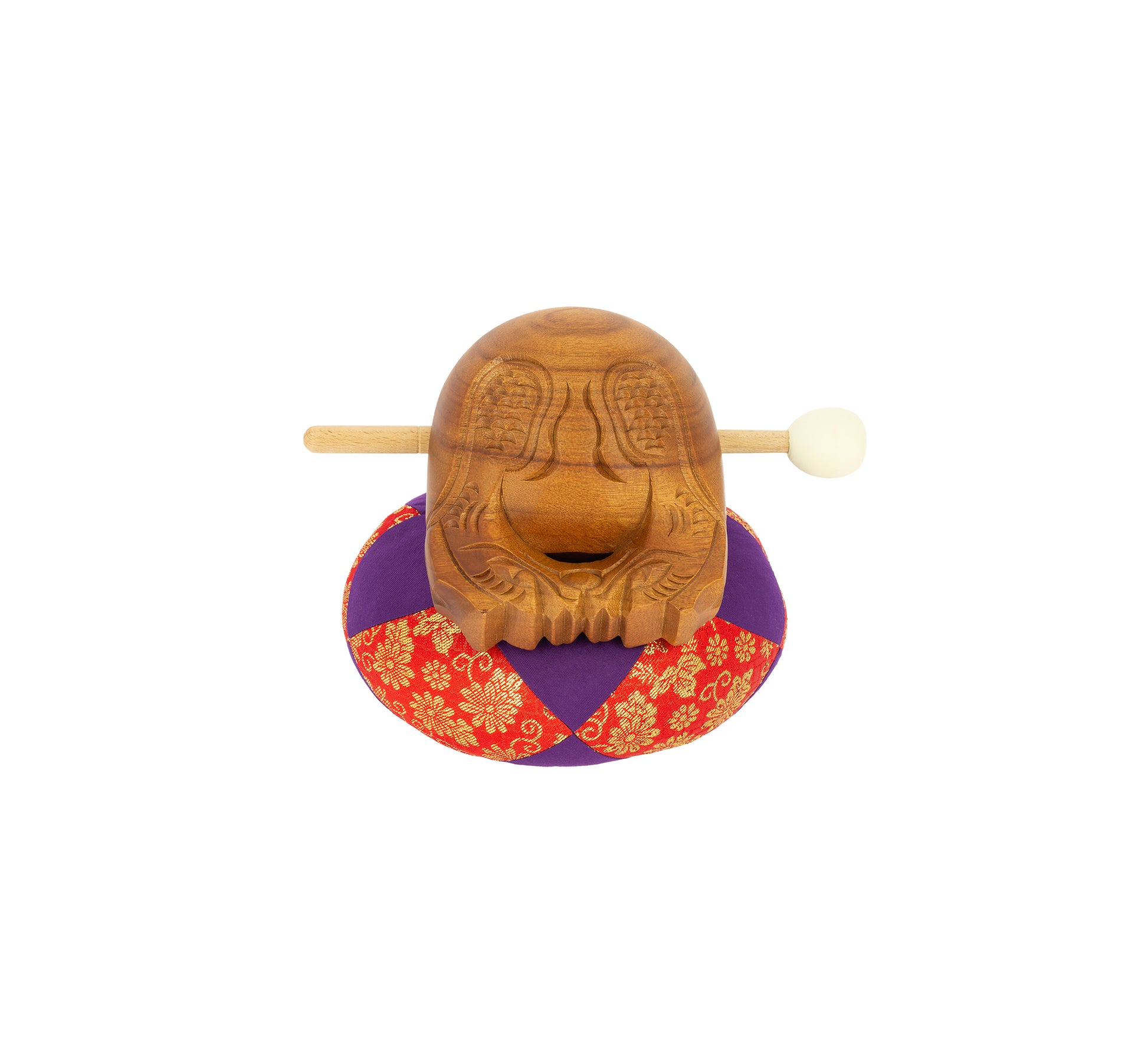 Le mokugyo est un instrument de percussion en bois utilisé pour accompagner la récitation de sutras. Il est fabriqué à partir de bois naturel et son aspect peut être légèrement différent de celui montré sur la photo.