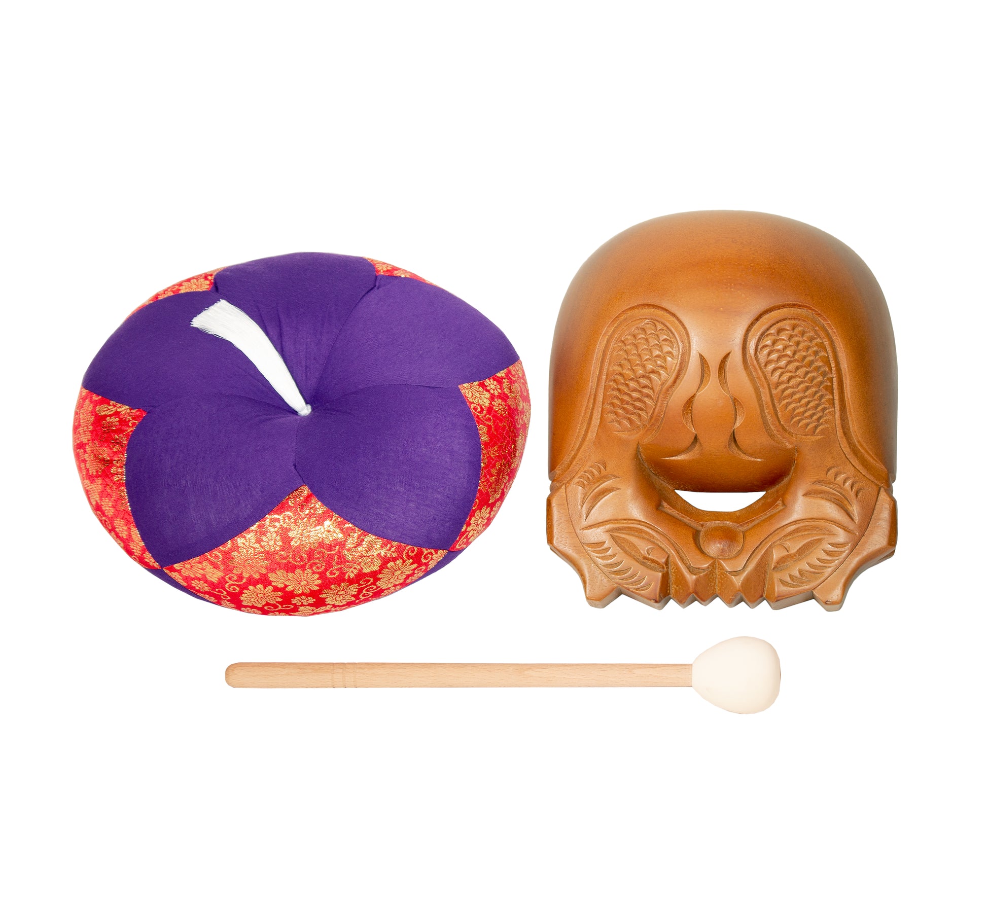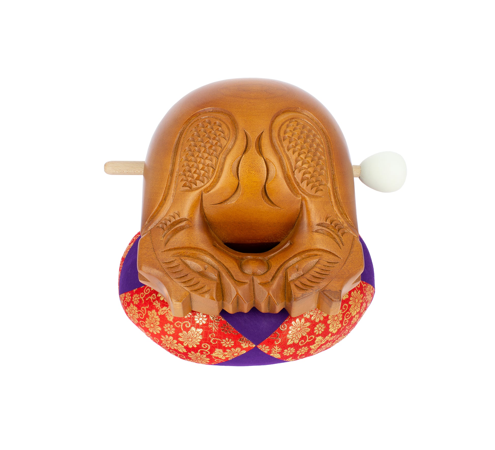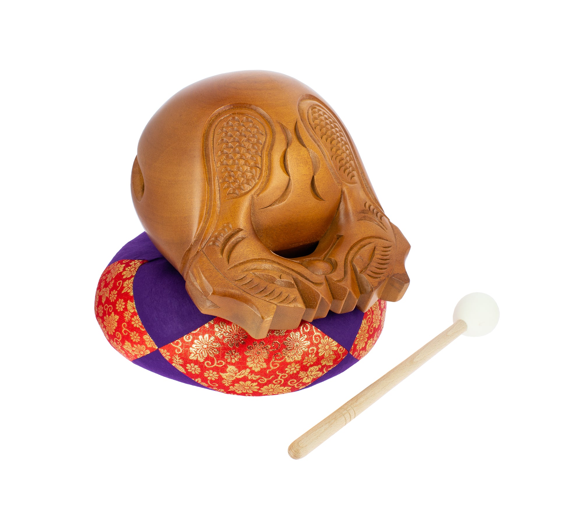 Le mokugyo est un instrument de percussion en bois utilisé pour accompagner la récitation de sutras. Il est fabriqué à partir de bois naturel et son aspect peut être légèrement différent de celui montré sur la photo.