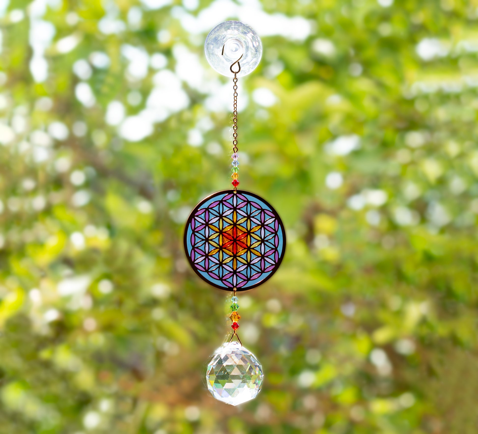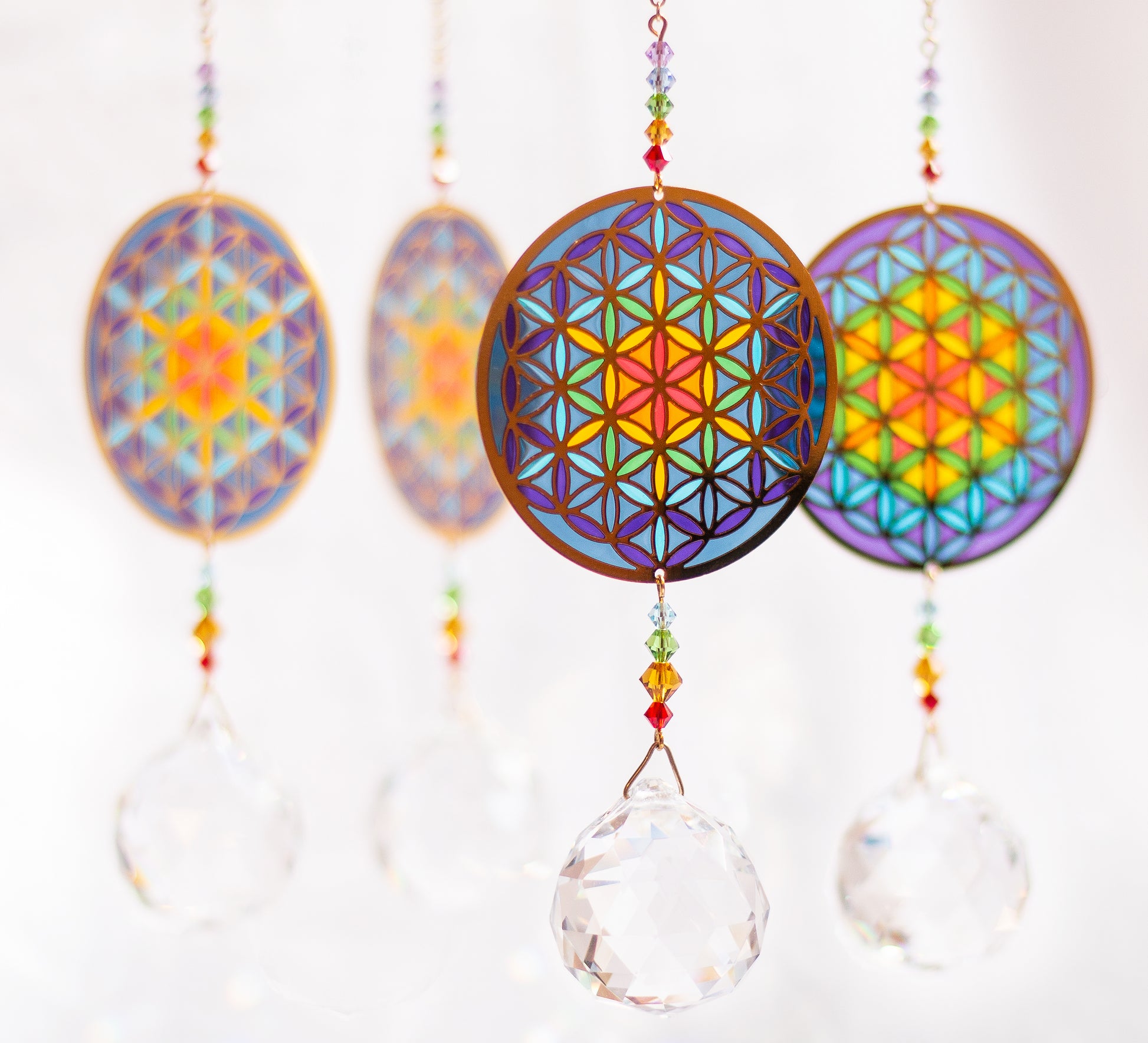 Secondo la geometria sacra, il fiore della vita è un simbolo potente che rappresenta la creazione, l'unità sacra e l'interrelazione tra tutti gli esseri. Aiuta a creare armonia nello spazio in cui viene collocato.Utilizzo dei creatori di arcobaleni