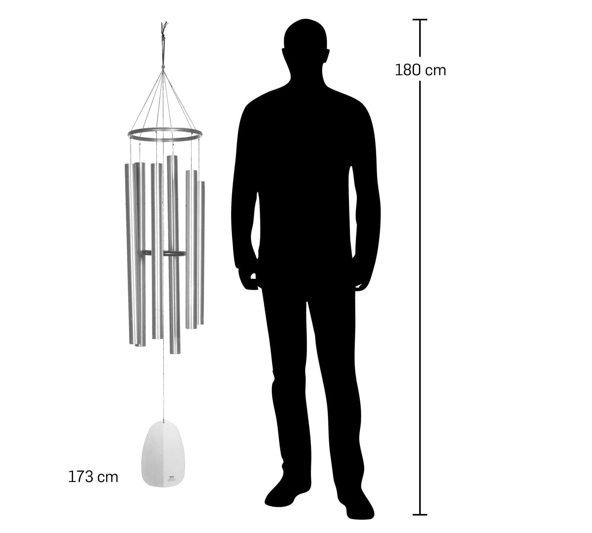 - Descrizione: 173 cm di lunghezza complessiva, 6 tubi in alluminio spazzolato argento, anello in alluminio argento e fermaglio a vento, statua non inclusa