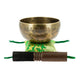 Poiché questa ciotola è martellata a mano, il bordo non è completamente uniforme, e all'inizio potrebbe trovare difficile farla cantare. Sia paziente, è una questione di pratica. Le consigliamo di provare a colpire la ciotola e a far scorrere la parte in legno del martello sul bordo superiore, variando la pressione e la velocità del movimento. Grazie alla sua parete spessa, produce una vibrazione di lunga durata.
