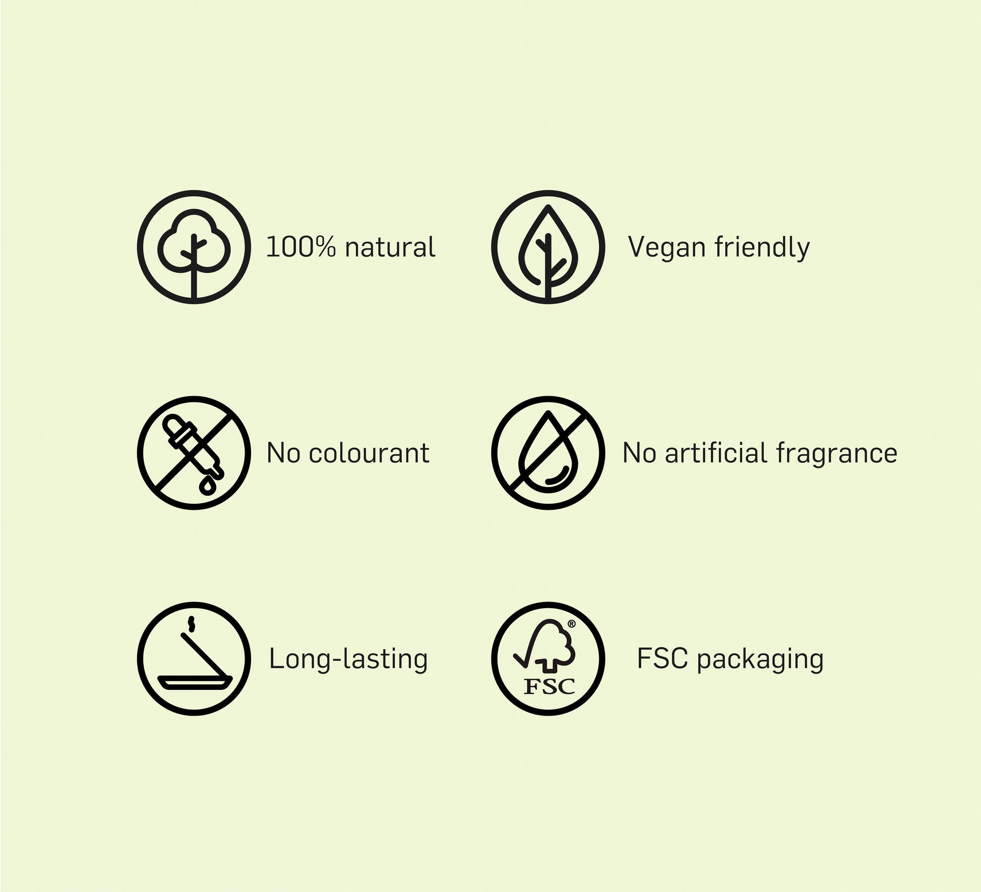 Godetevi materie prime di alta qualità con la comodità di un bastone giapponese. L'assenza del supporto di bambù aiuta a preservare le qualità e l'unicità di ogni ingrediente. Lasci che la magia accada con i nove profumi che abbiamo accuratamente selezionato!