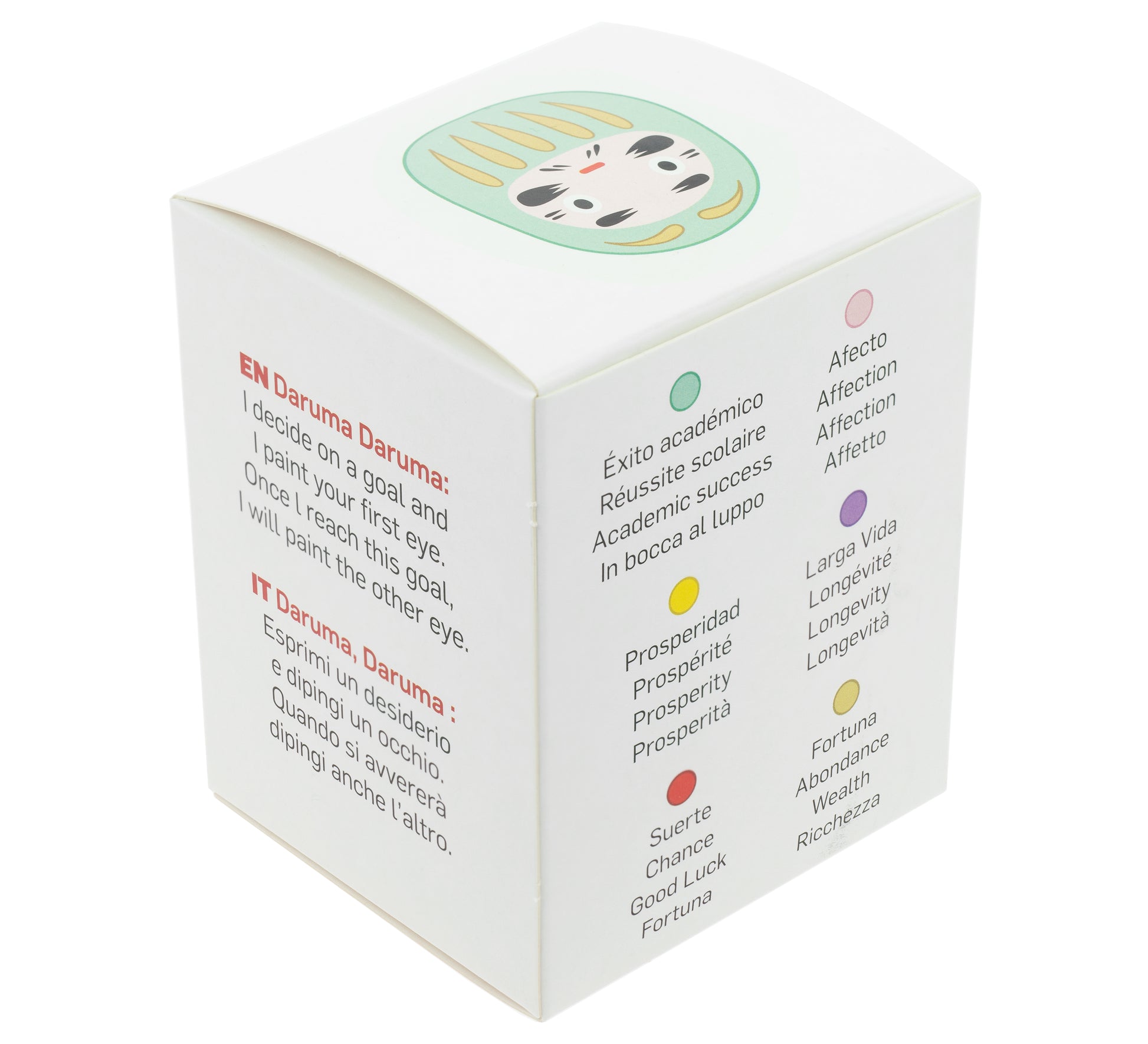 Decida un obiettivo e dipinga il primo occhio sul Daruma. Quando raggiunge il suo obiettivo, dipinga il secondo occhio come segno di gratitudine. Per imparare, scriva come ha raggiunto il suo obiettivo; in quel momento, proverà una grande soddisfazione.Lo spirito del daruma