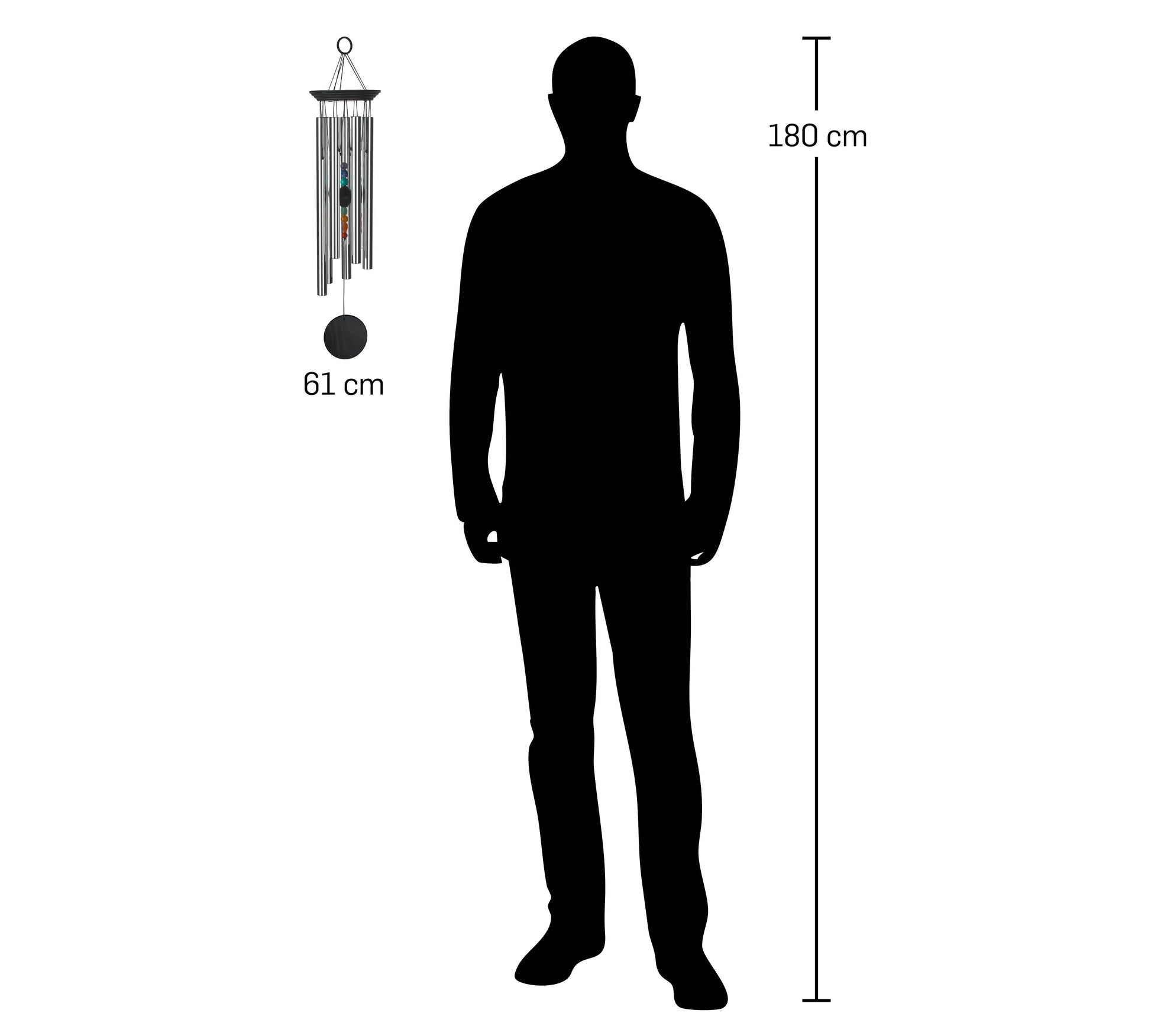 Disfruta de una combinación potente de sonidos y colores gracias a la Campana de Viento 7 Chakras Grande. La afinación de los tubos está garantizada de por vida.