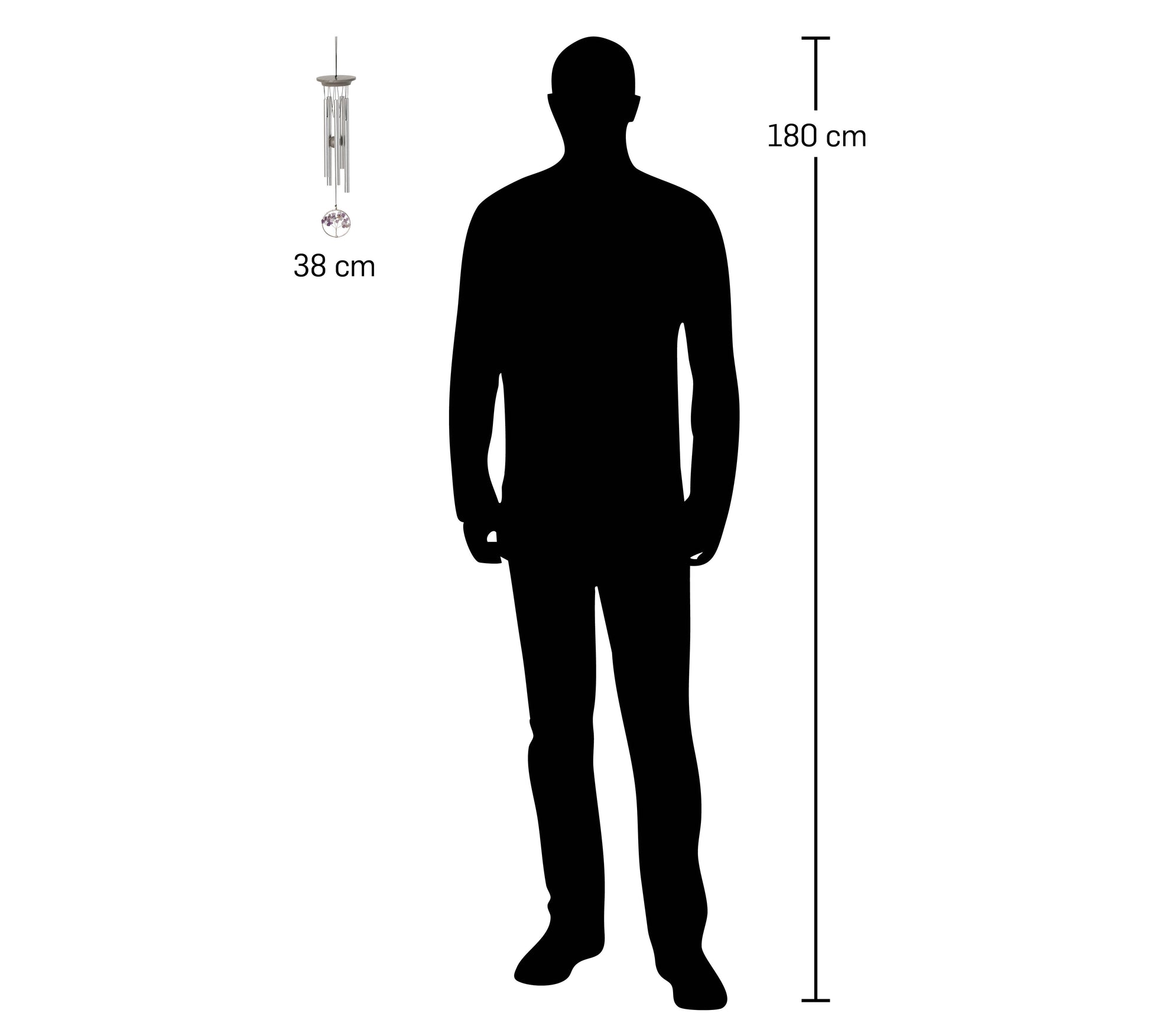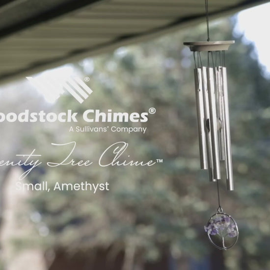 Esta campana está afinada en una brillante escala pentatónica. Su veleta está decorada con un hermoso árbol de la serenidad, representación conceptual que evoca sentimientos de tranquilidad, armonía y a menudo simboliza fuerza, estabilidad y conexión con la naturaleza. Este árbol está decorado con trocitos de amatistas auténticas.