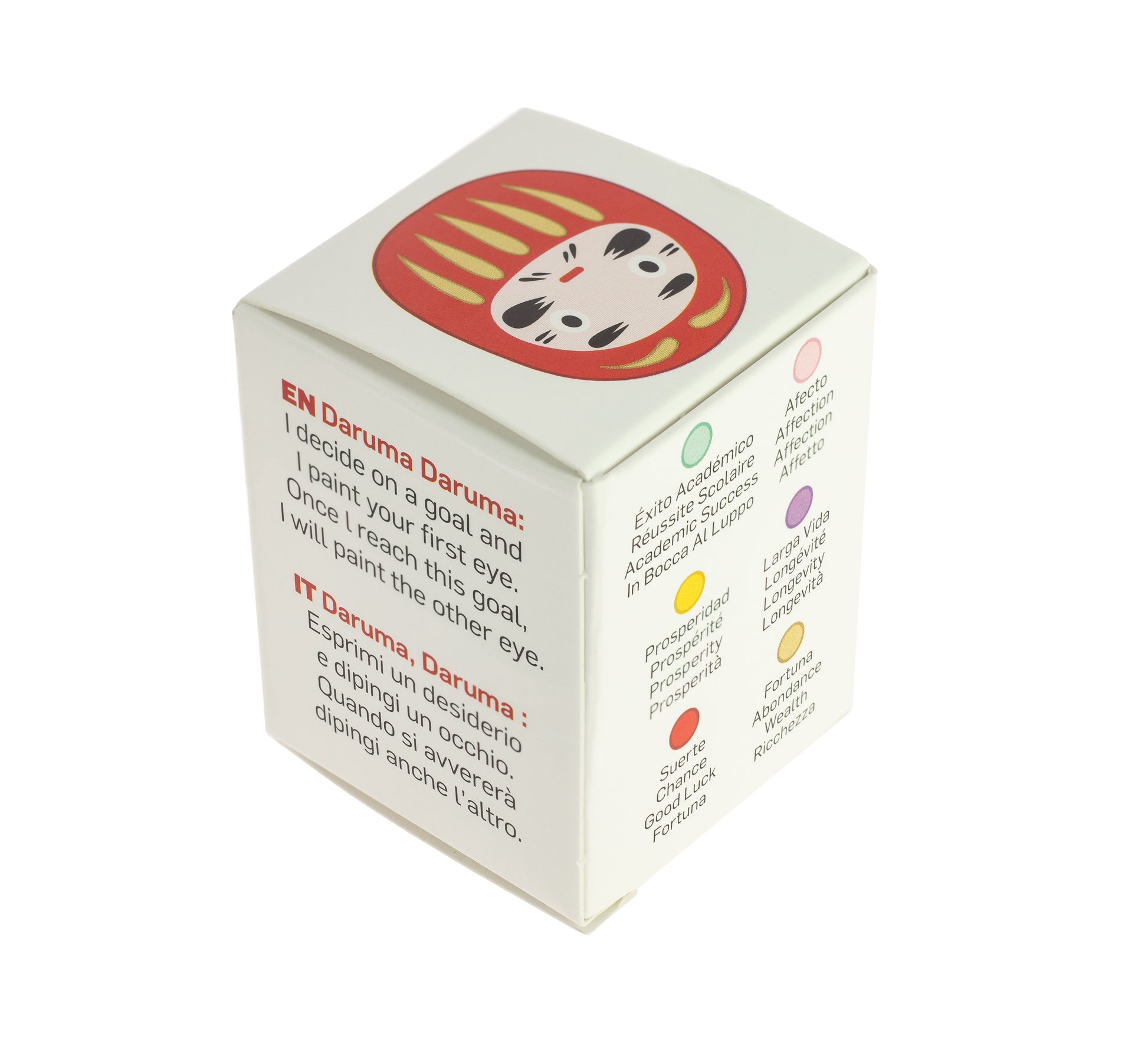 O Daruma, também chamado Boneco dos Objectivos, é um amuleto japonês de boa sorte. Feito à mão com papel maché, é uma representação do monge Bodhidharma, o fundador do budismo zen. Segundo a lenda, iluminou-se depois de meditar sozinho durante 9 anos numa gruta, mas os seus braços e pernas acabaram por ficar atrofiados e cair. Daí a forma redonda do Daruma.Como usar o Daruma