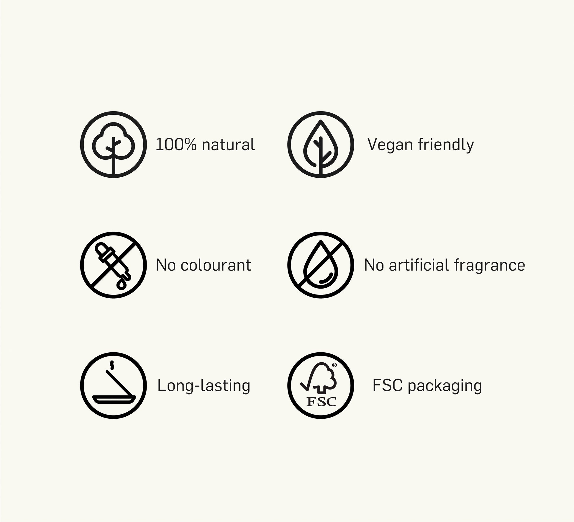 A fragrância desta mistura de agarwood, sândalo e benjoim doce com um toque de baunilha é perfeita para acalmar a mente e suavizar o humor. Ajuda a criar uma atmosfera calma que facilita a meditação.