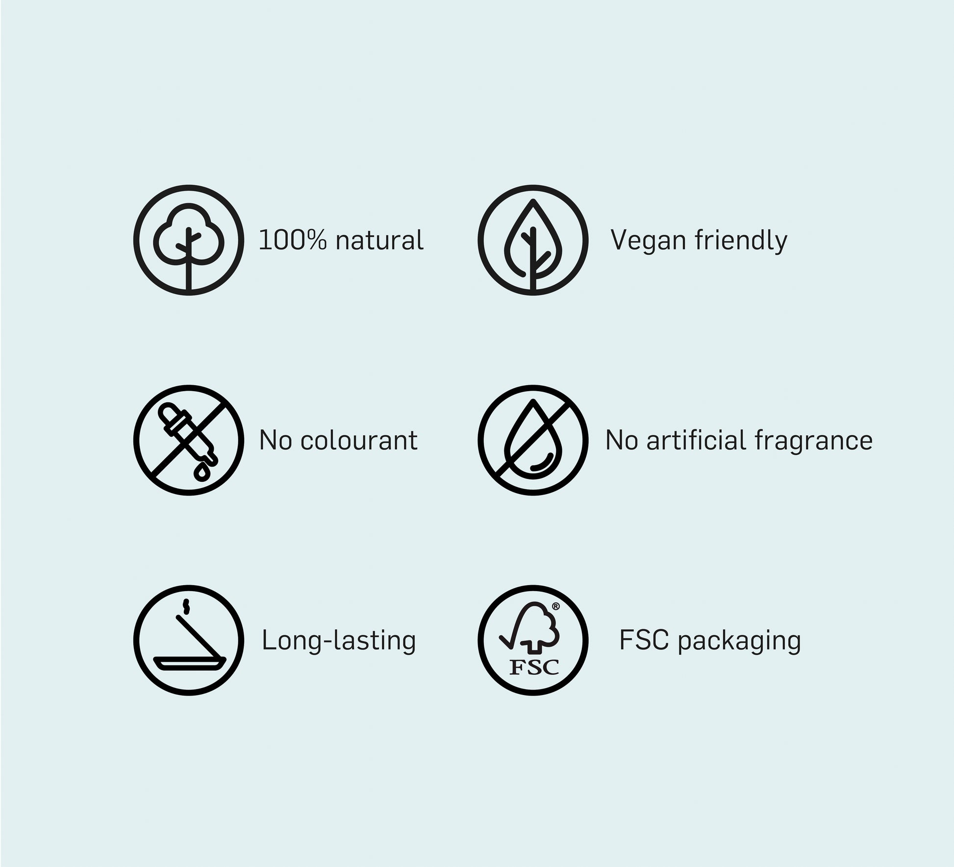 A fragrância desta mistura de palo santo, folhas de hinoki e sândalo é ideal para purificar o corpo e a mente. A associação destas três madeiras sagradas ajudará a renovar a energia do local onde é utilizado.