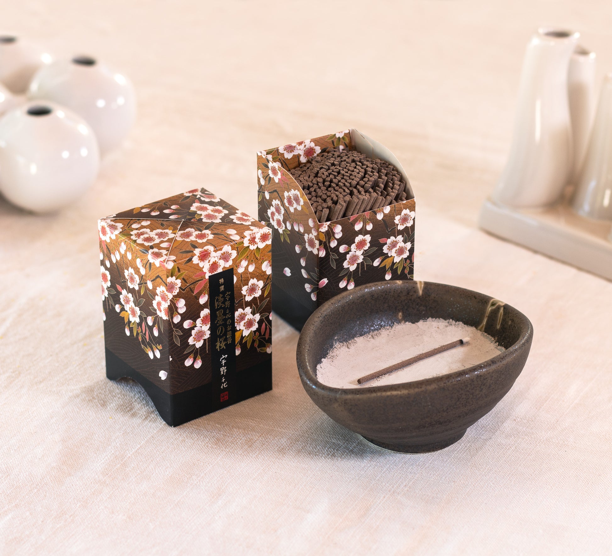 Este incenso é um tributo à Usuzumi no Sakura, a cerejeira em flor cinzenta pálida. Esta árvore gigante tem mais de 1500 anos e cresce nas montanhas de Gifu. Todas as primaveras floresce novamente como um milagre da vida.