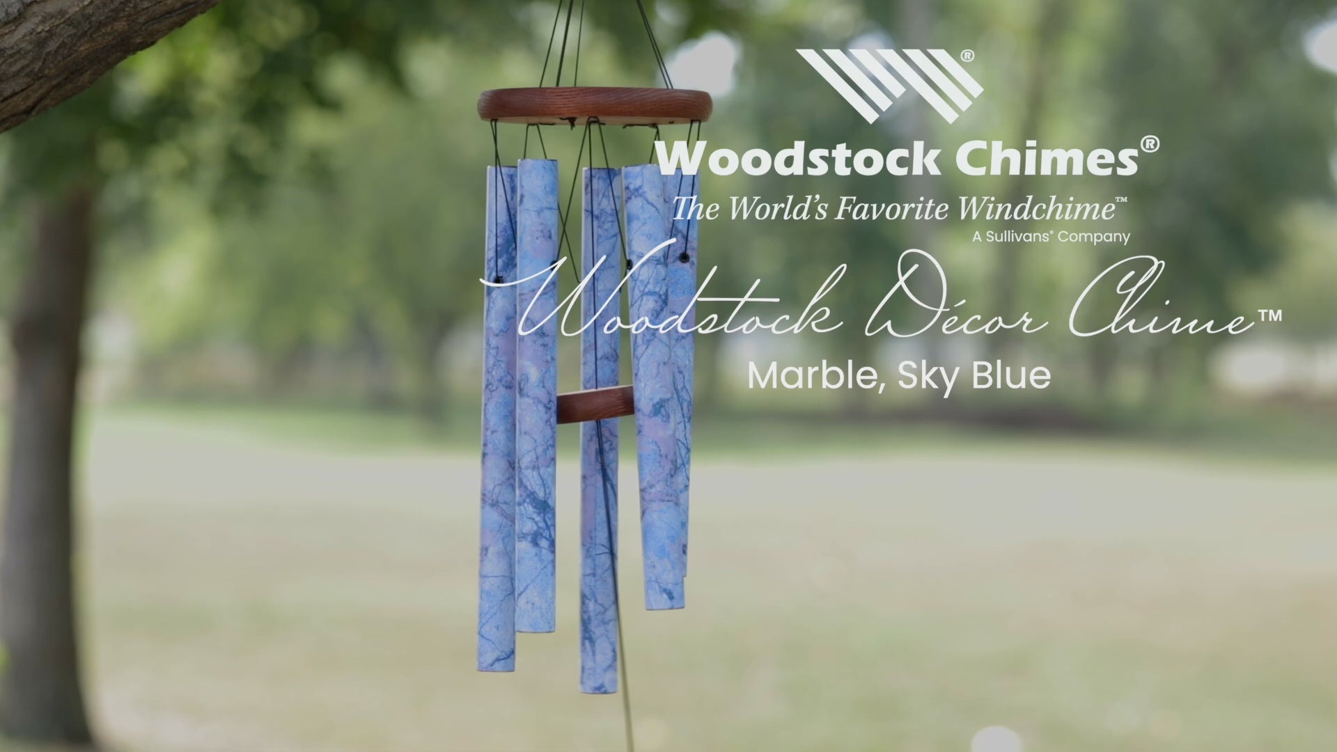 Este carrilhão de vento é acabado com impressão UV. Esta técnica única e versátil, que combina luz ultravioleta e tintas especiais, permite à Woodstock imprimir desenhos exclusivos numa grande variedade de materiais (madeira, alumínio, acrílico ou vidro). O acabamento resultante é resistente às intempéries e o carrilhão pode ser colocado no exterior sem qualquer problema. Os tubos têm uma garantia vitalícia de afinação.